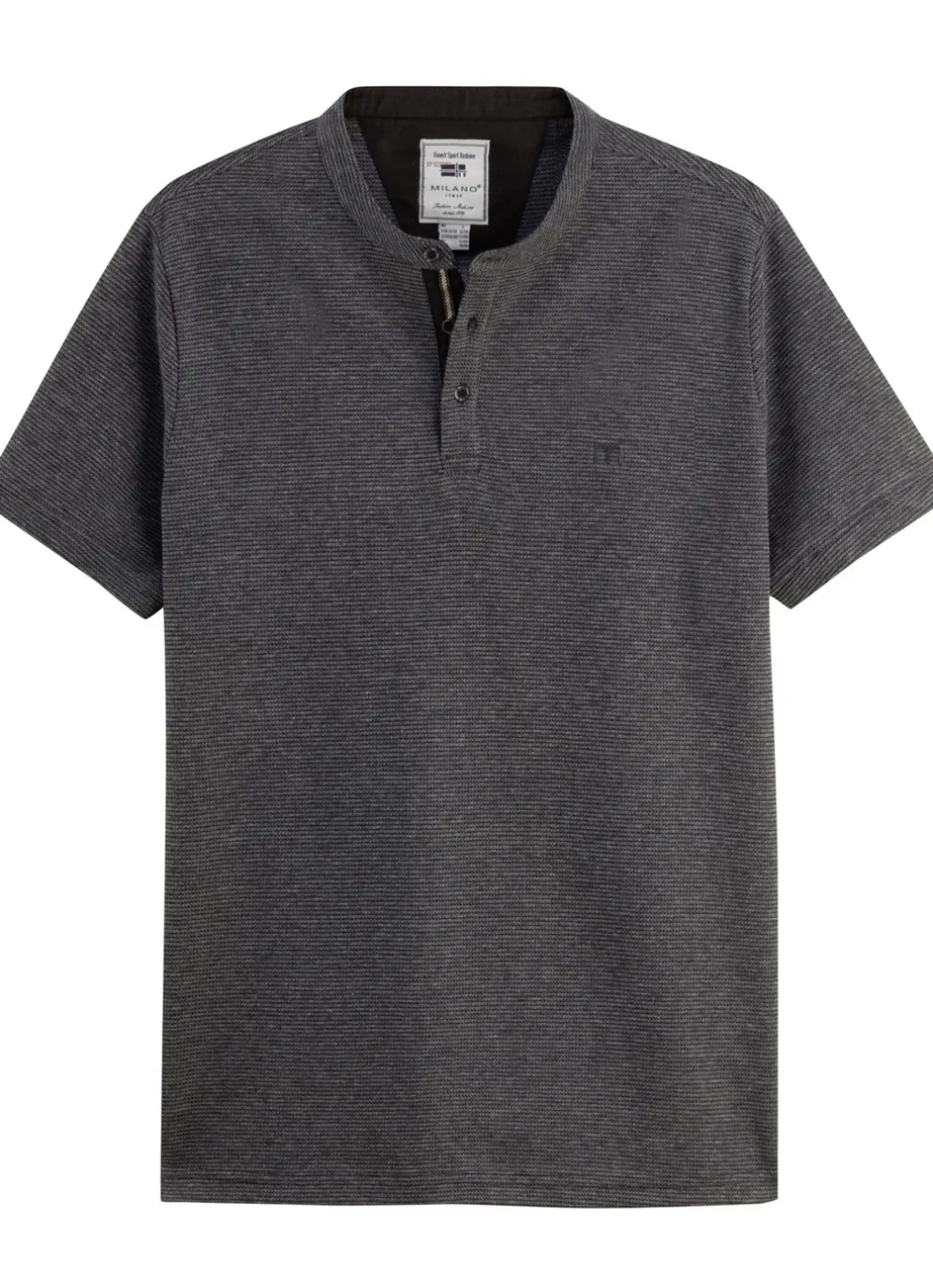Sommerliches Shirt von „Milano Italy“ mit Kontraststreifen an der kurzen Knopfleiste.