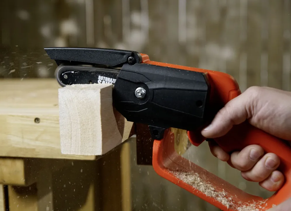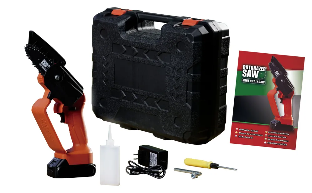 Mit der Rotorazer-Mini-Akku-Kettensäge bekommen Sie die Gartenbarbeit in den Griff! Rotorazer bietet ein einzigartiges ergonomisches Design, ist besonders leicht und tragbar und ermöglicht vielseitiges Arbeiten mit hoher Präzision. Der mitgelieferte leistungsstarke Akku (1500 mAh, 31,5 Wh) macht Rotorazer ideal für den Astschnitt und zum Zerkleinern von Gartenabfällen. Ein zusätzlicher Handschutz sorgt für Sicherheit. Inkl. Ladegerät und Koffer. Maße: L40xB18xH11 cm.