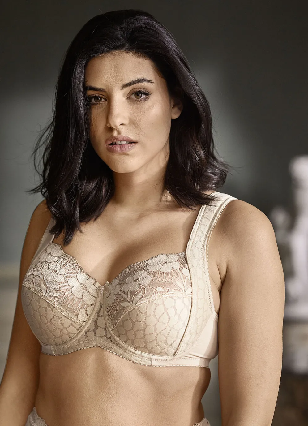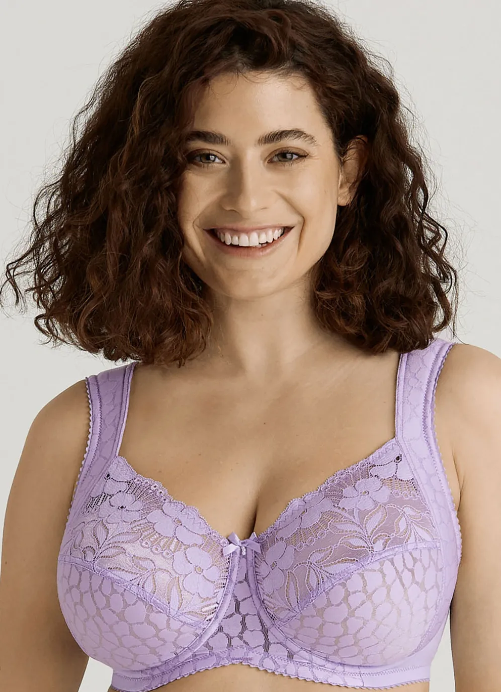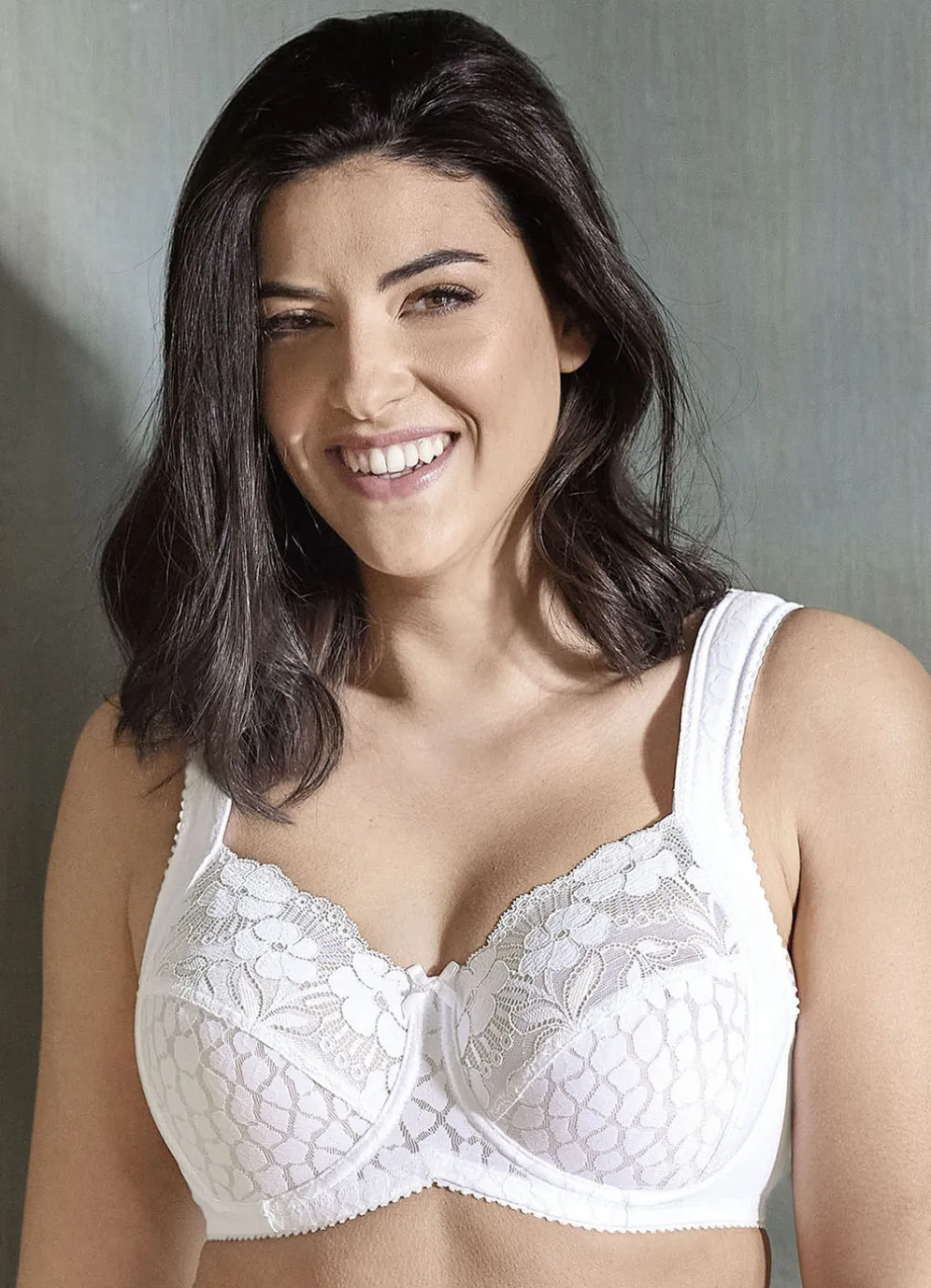 „Miss Mary“-Bügel-BH mit strukturiertem Vorderteil, Elastikspitze in den Obercups sowie weich gepolsterten, seitlichen Blenden, die in die verstellbaren Stretchträger übergehen.