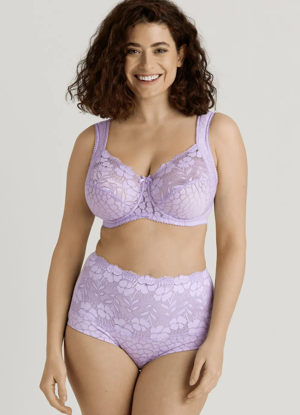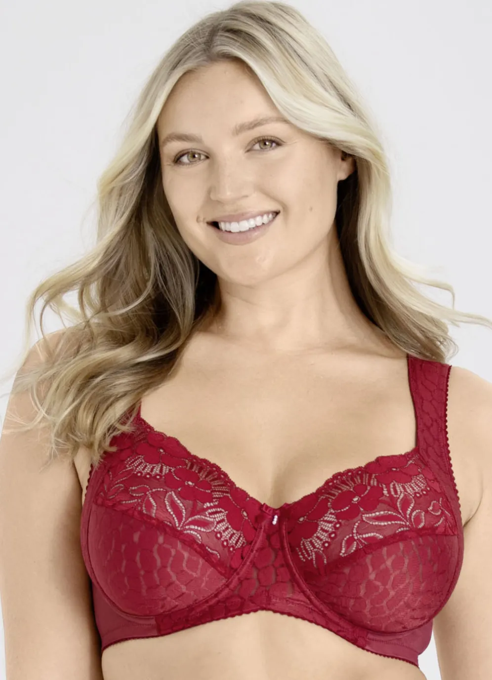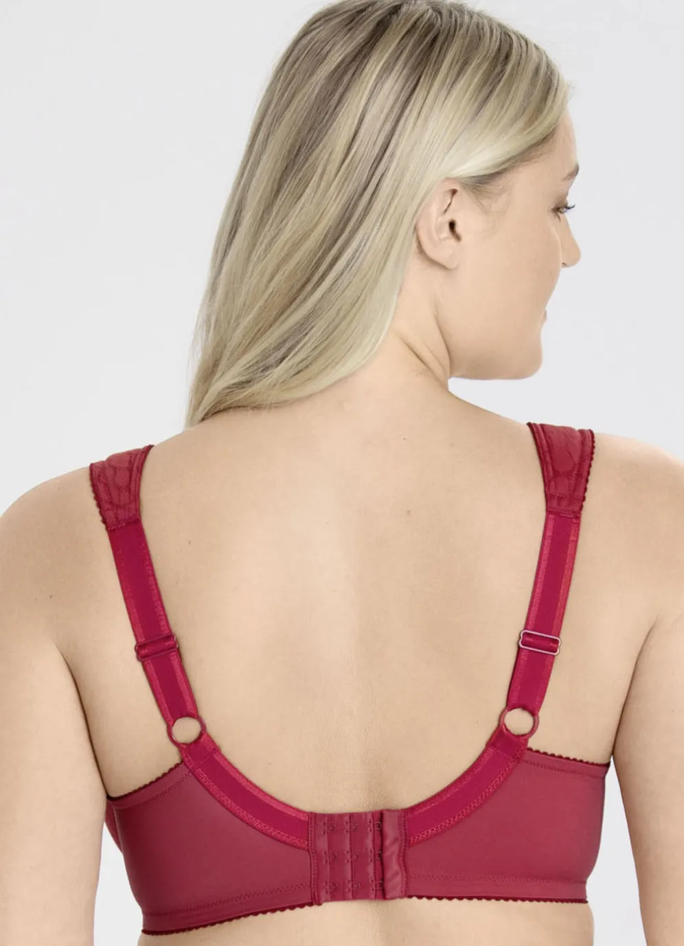 „Miss Mary“-Bügel-BH mit strukturiertem Vorderteil, Elastikspitze in den Obercups sowie weich gepolsterten, seitlichen Blenden, die in die verstellbaren Stretchträger übergehen.