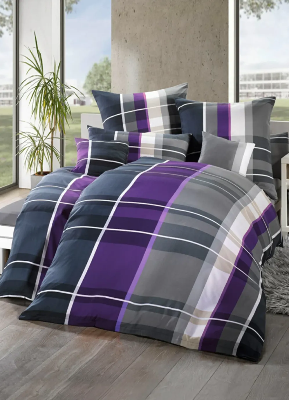 Moderne Bettwäsche-Garnitur aus Microfaser in Größe 912 (10-teiliges Sparset) und in Lila.