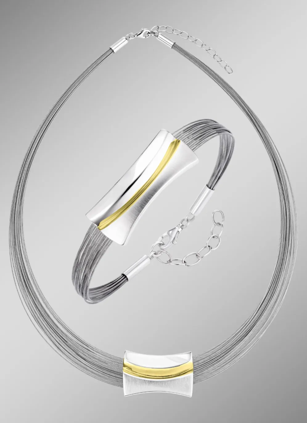 Eleganz trifft auf Vielseitigkeit: Garnitur in Bicolor aus Silber 925/- fein und Stahl