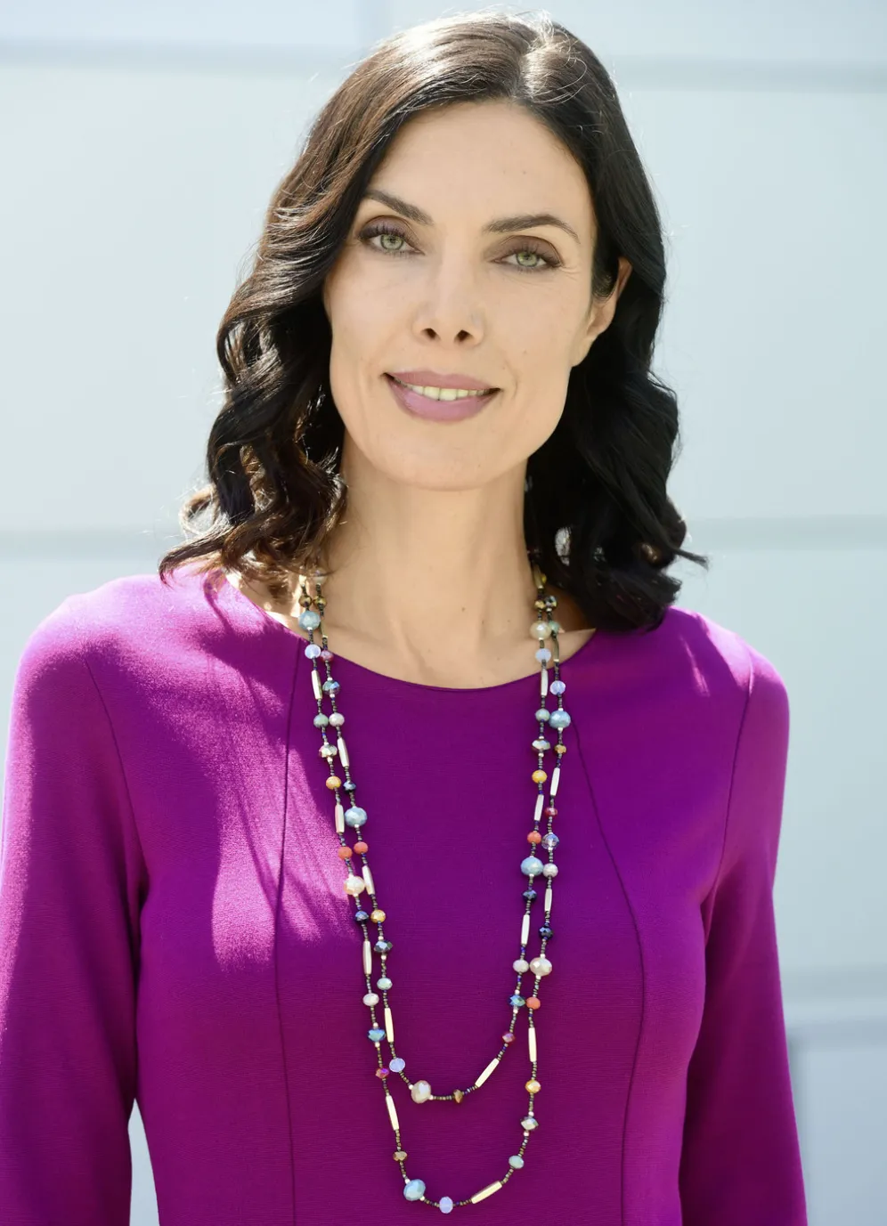 Sie suchen nach einer Halskette, die Ihrem Stil entspricht? Dann ist diese moderne Halskette mit bunten Schmuckperlen genau das Richtige für Sie. Diese Halskette ist aus Kunststoff gefertigt und hat zwei Reihen von facetierten Perlen in verschiedenen Farben. Die Perlen verleihen der Halskette einen frischen und verspielten Look, der zu jedem Outfit passt. Die Halskette hat eine Länge von 95 cm plus 5 cm Verlängerung und einen Karabinerverschluss, der sicher und bequem zu tragen ist. Diese Halskette wird Sie immer wieder zum Strahlen bringen.