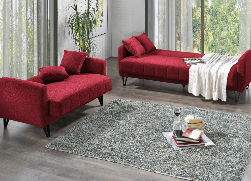 Moderne Polstermöbel mit Kippfunktion in der Ausführung Sessel und in Rot.