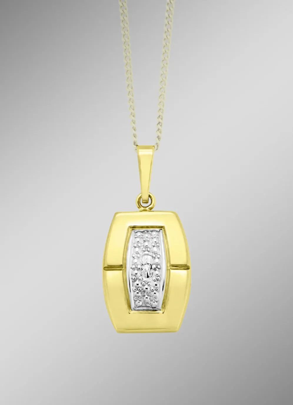 Mit einem edlen Diamanten, Weiß, Piqué 2 besetzt weiß dieser Anhänger von sich zu überzeugen. Der 10×15 mm große Halsschmuck aus Gold 585/- fein, oder Gold 333/- fein schmiegt sich sanft um den Hals der Trägerin und zaubert einen wunderschönen Look. Ein echtes Highlight!