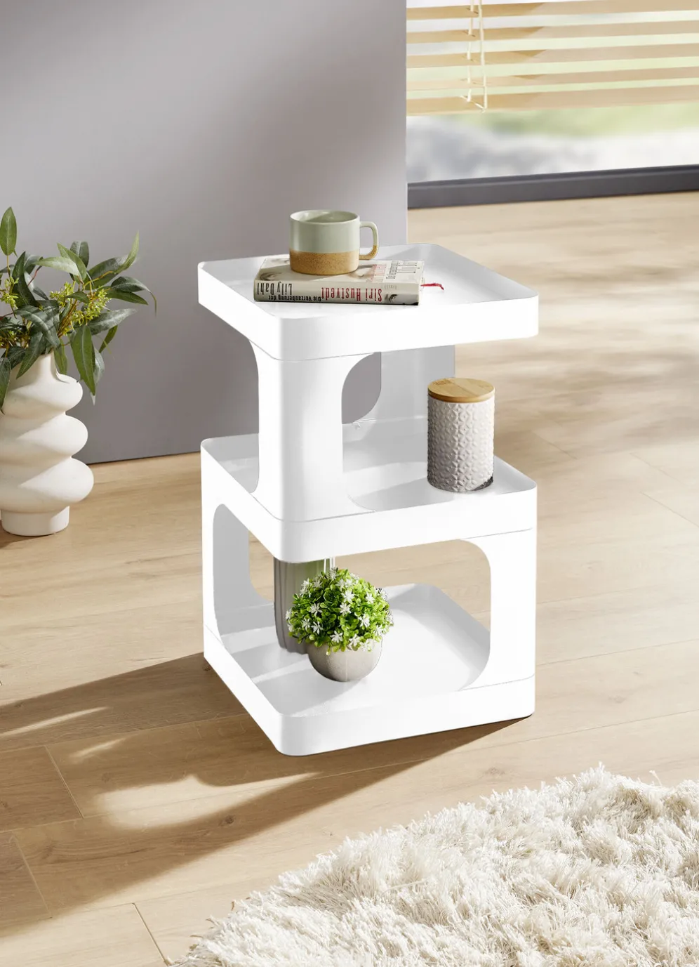 Moderner Beistelltisch aus Metall in Weiss.