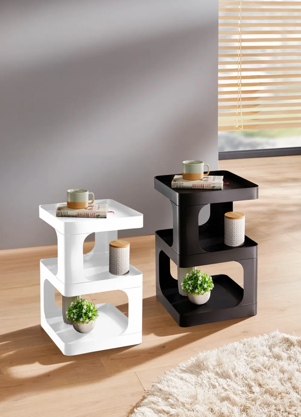 Modern und stilsicher zugleich zeigt sich dieser pfiffige Beistelltisch aus Metall. Mit 3 Ablagen, jeweils mit umlaufenden Rand gearbeitet. Maße: B35xH55xT35 cm. Die Lieferung erfolgt aufgebaut.