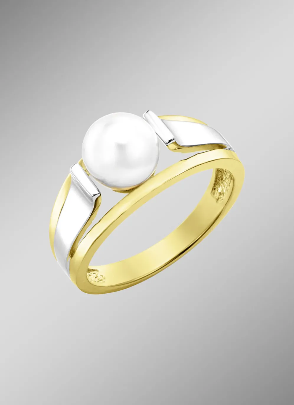 Ein Damenring, der klassische Eleganz mit modernem Design vereint! Gefertigt aus Gold 375/- fein in glänzender Bicolor-Optik, strahlt dieses Schmuckstück pure Raffinesse aus. Die sanfte Süßwasser-Zuchtperle mit einem Durchmesser von 7,5-8 mm verleiht ihm eine zarte und zeitlose Schönheit, während der fein gearbeitete Ringkopf von 8 mm das exquisite Design perfekt abrundet.