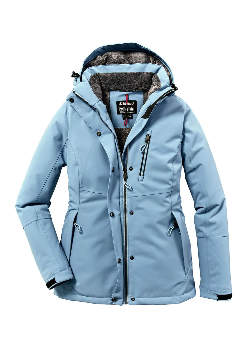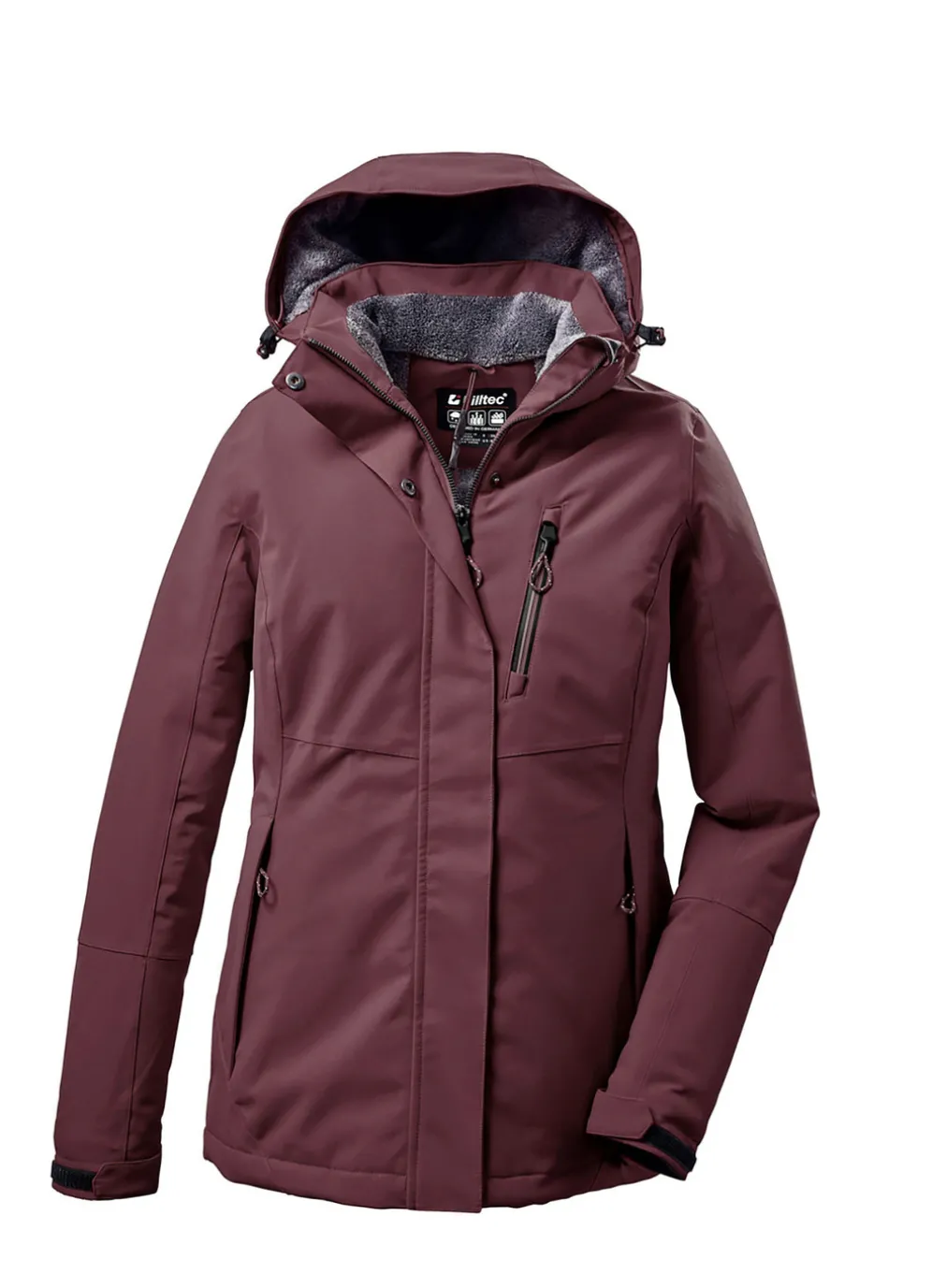 Details: abzippbare, verstellbare Kapuze, RV mit Kinnschutz, 2 RV-Taschen, 1 Brusttasche, verstellbare Ärmelbündchen, Innentasche, Saumgummizug mit Stopper sowie tragangenehmer Teddyfleece an Kapuze und Innenkragen.