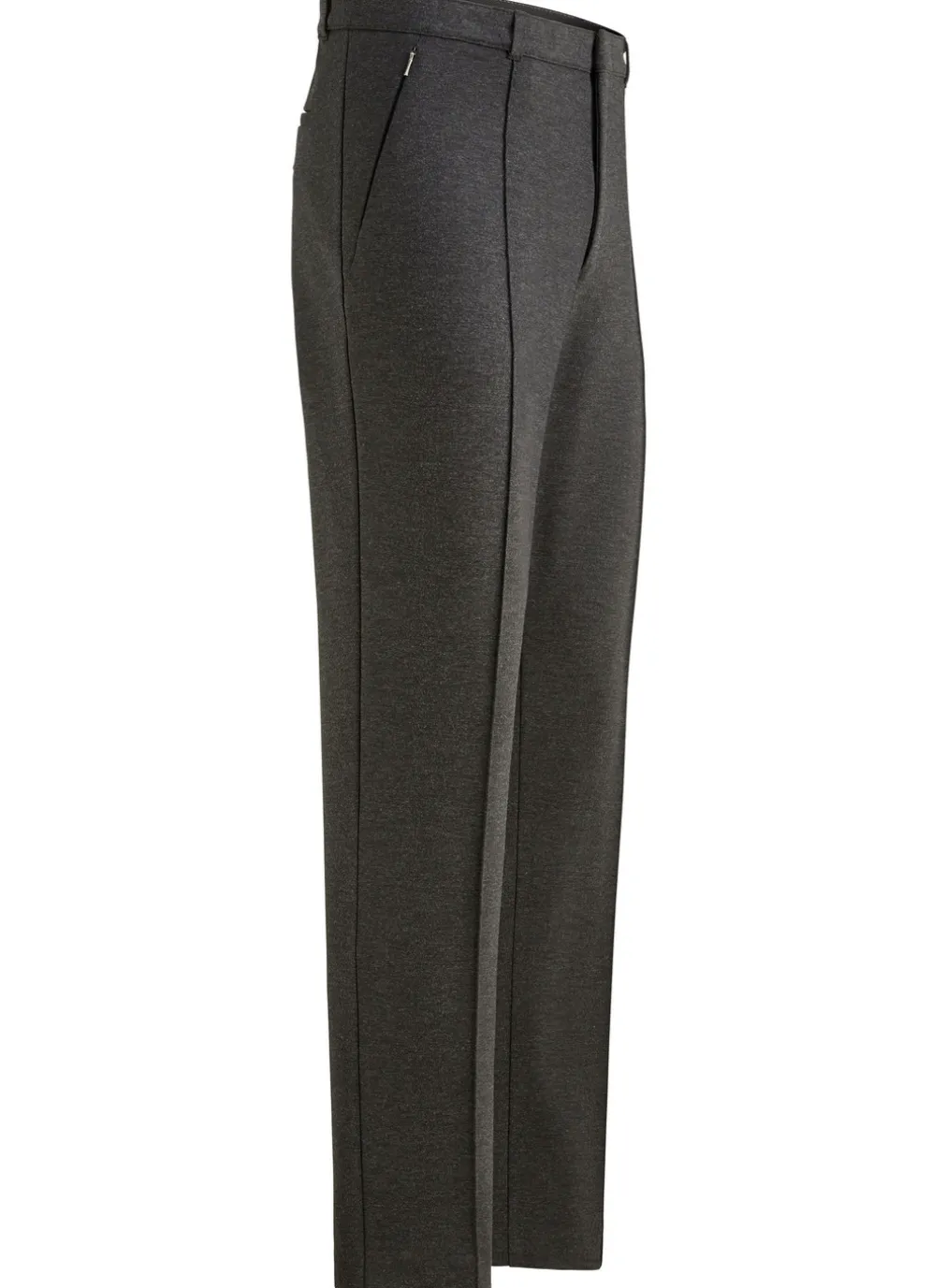 Modische Hose mit Dehnbund, Seitentaschen mit Reißverschluss sowie Gesäßpaspeltasche mit Knopfverschluss.
