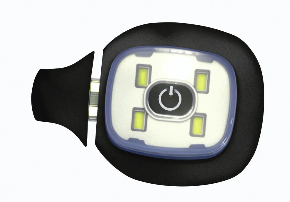 Modische Mütze mit integrierter, herausnehmbarer LED-Lampe in Schwarz.