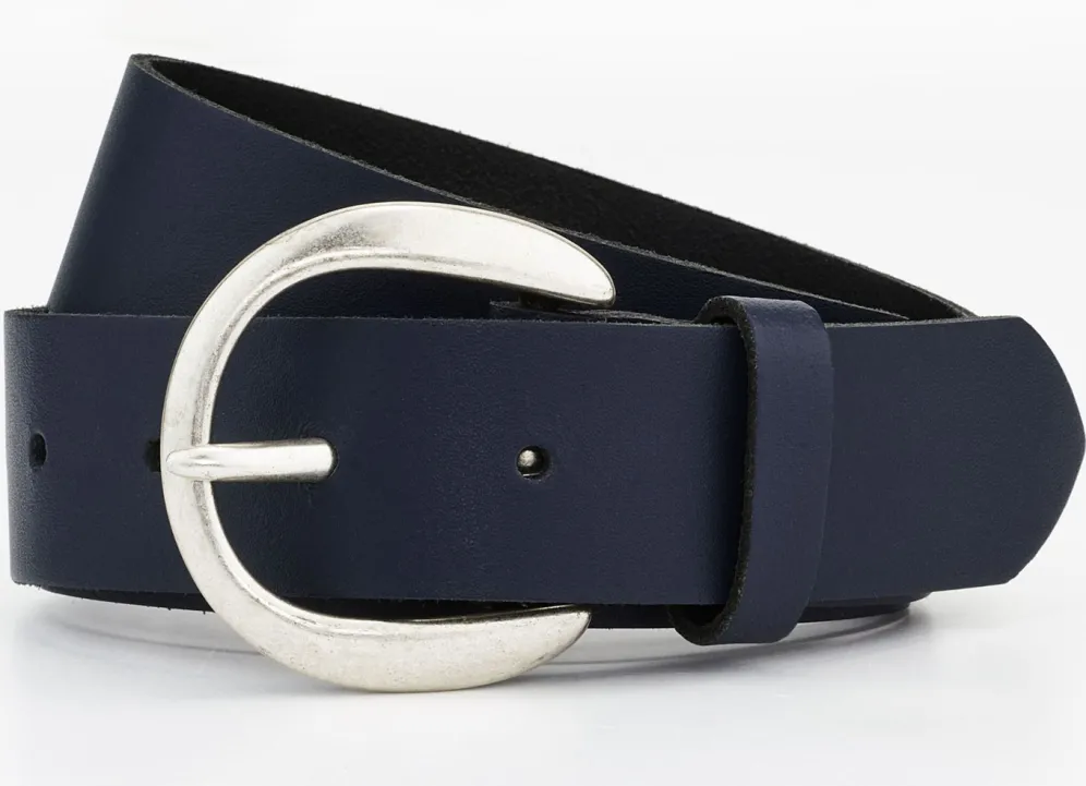 Modischer Damen-Gürtel aus Leder, 3,5 cm breit in Marine und in Größe 100.