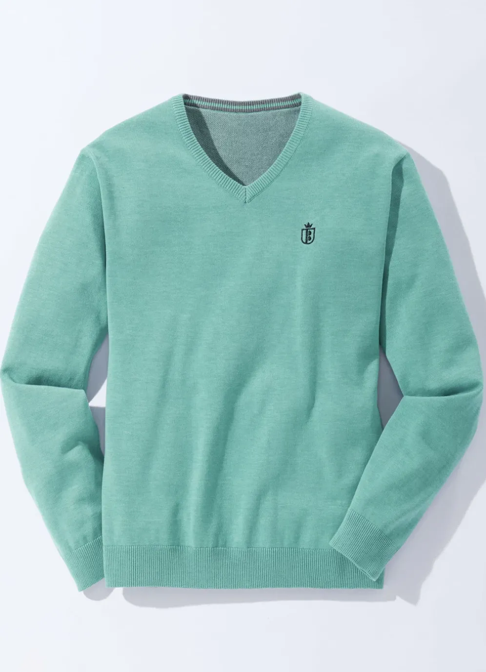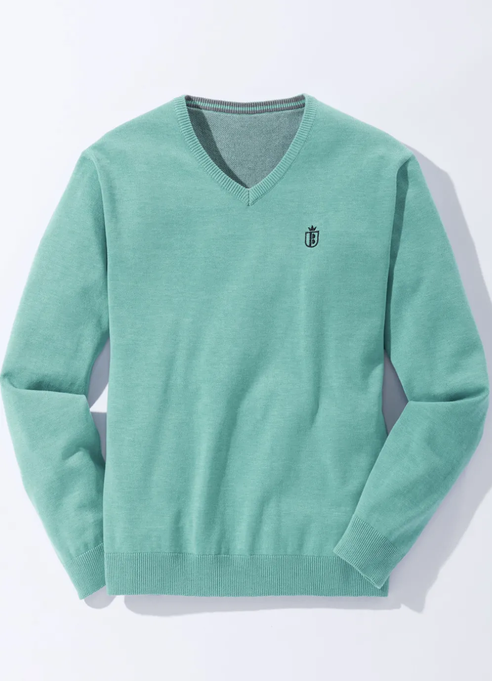 Modischer V-Pullover in 6 Farben in Türkis Meliert und in Größe 48.