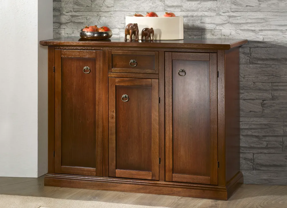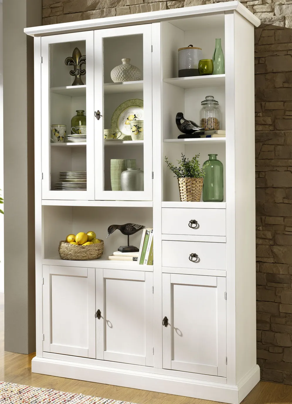 Für eine besonders gemütliche Atmosphäre in Ihrem Wohnraum sorgt diese Möbelserie im rustikalen Stil aus teilmassivem Holz mit gewollt eingearbeiteten Gebrauchsspuren. Mit Metallgriffen. Die Lieferung erfolgt aufgebaut