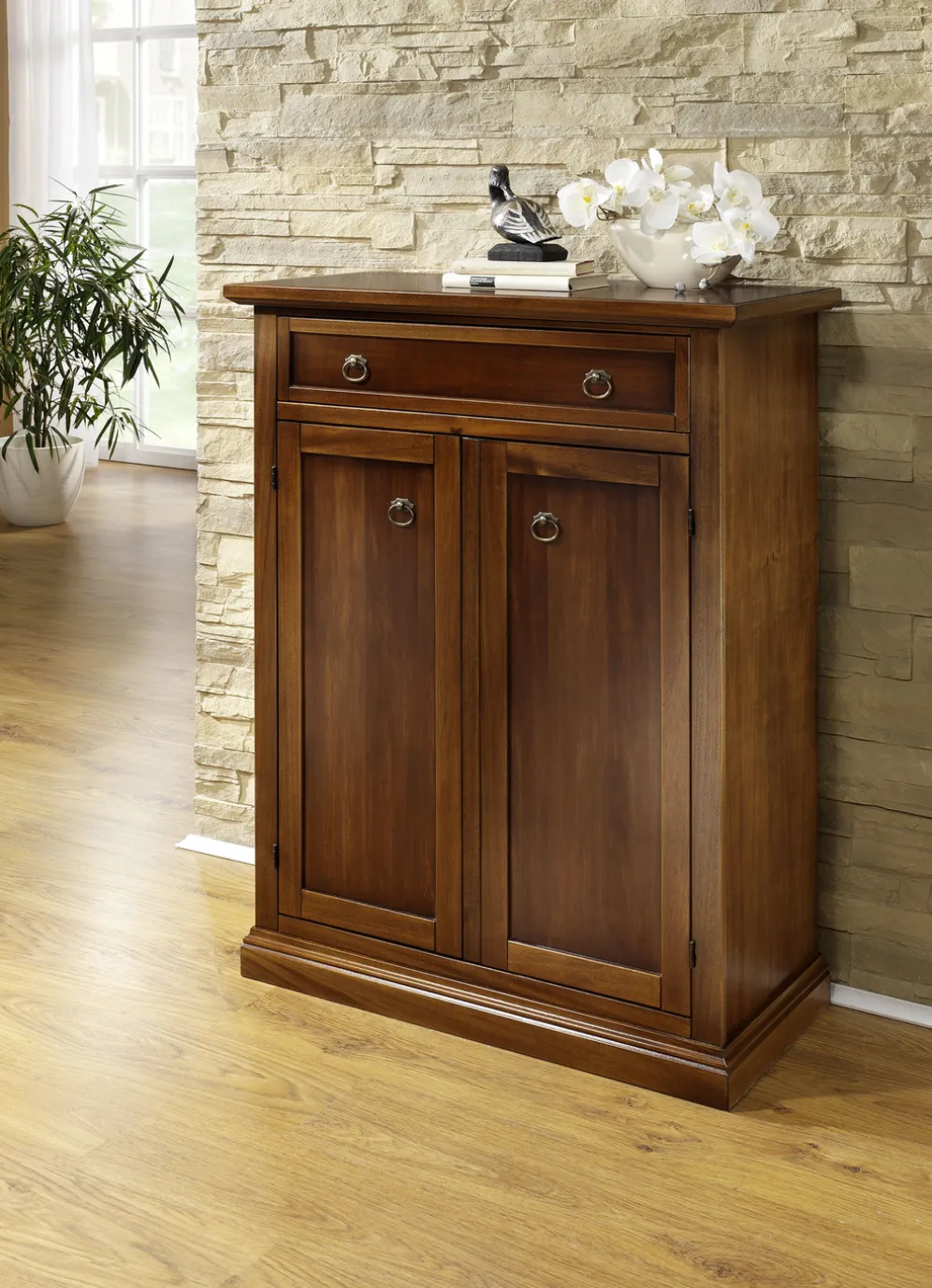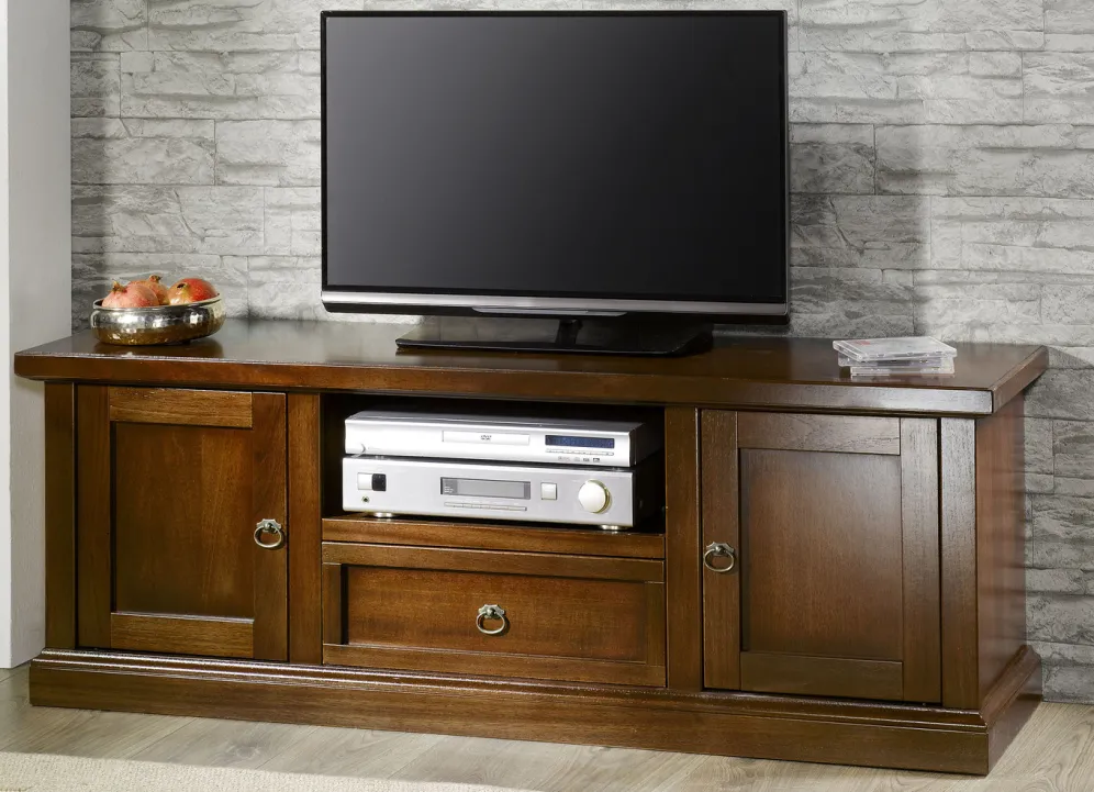 Möbelserie aus teilmassivem Holz in der Ausführung TV-Kommode und in Antikweiss.
