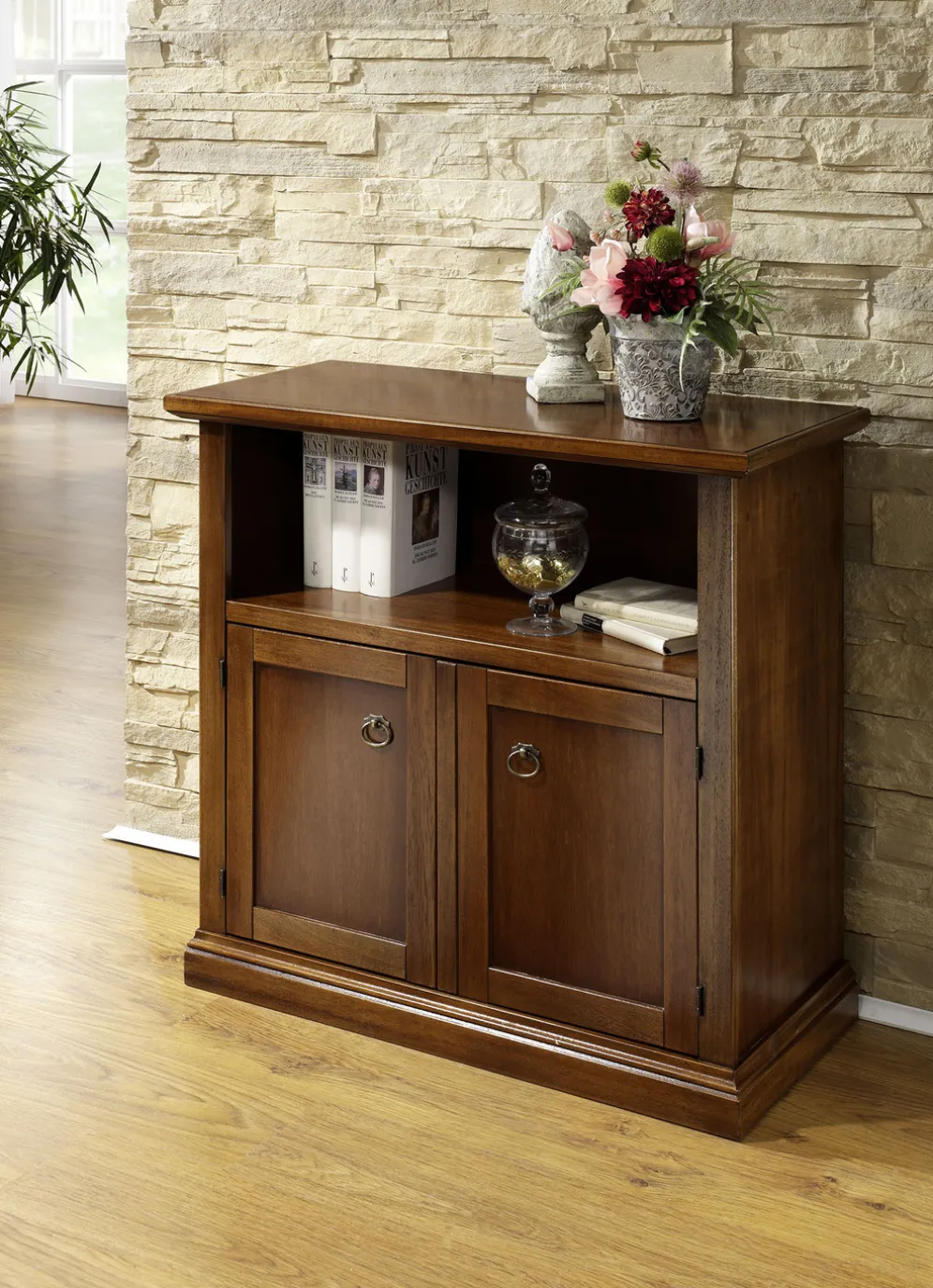 TV-Kommode. Mit 1 offenen Fach (lichte Maße: B69,5xH24xT34 cm) und 2 Türen. Maße: B87xH82xT40 cm