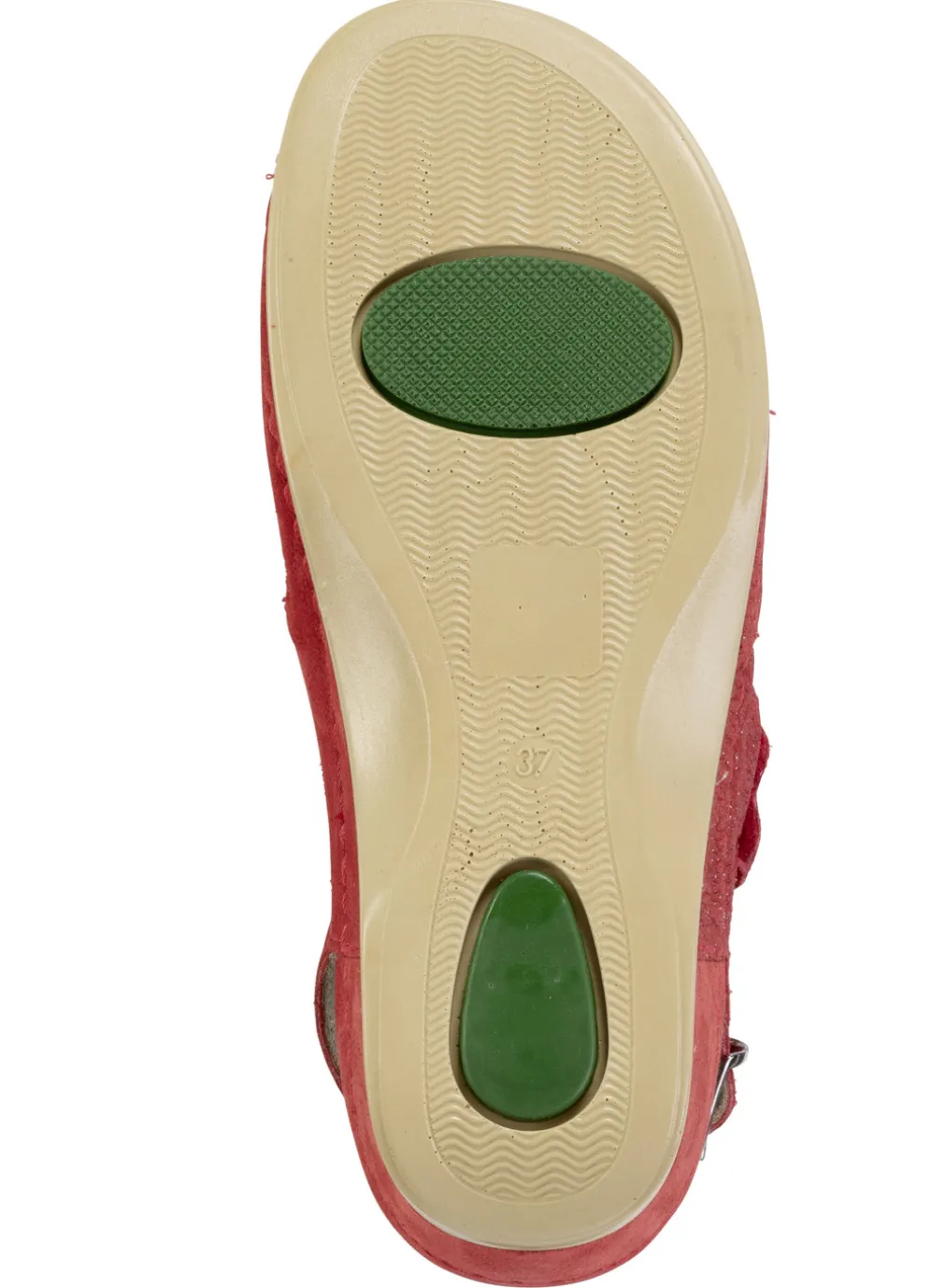 Mubb, bequeme Damen-Sandalen, Weite H, mit herausnehmbarem Fußbett in Rot und in Größe 40.
