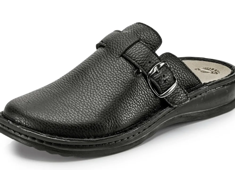 Mubb, bequeme Herren-Clogs, Weite H, mit herausnehmbarem Fußbett in Schwarz und in Größe 45.