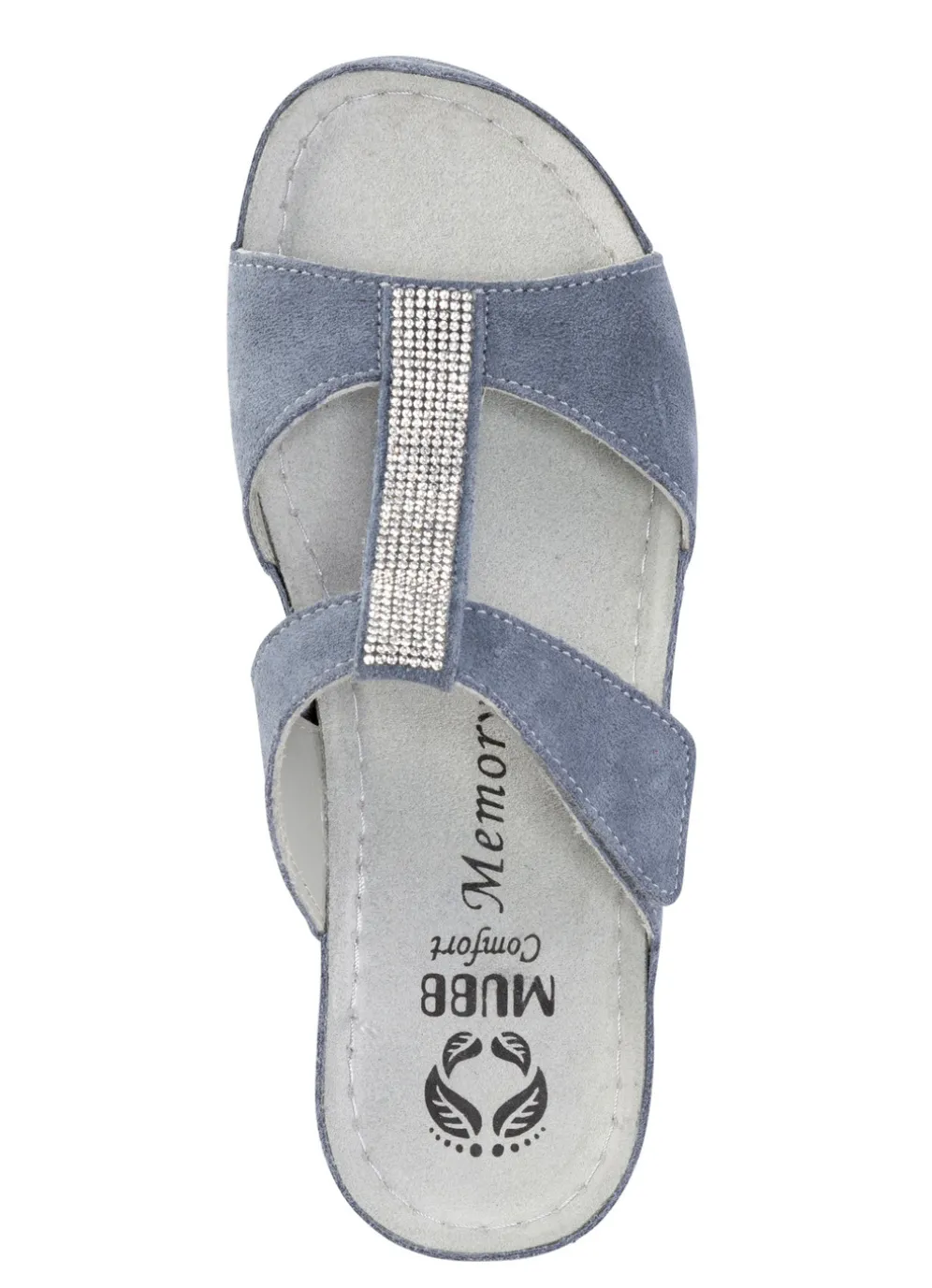 Mubb Pantolette mit funkelnden Glitzersteinchen in Jeans und in Größe 37.