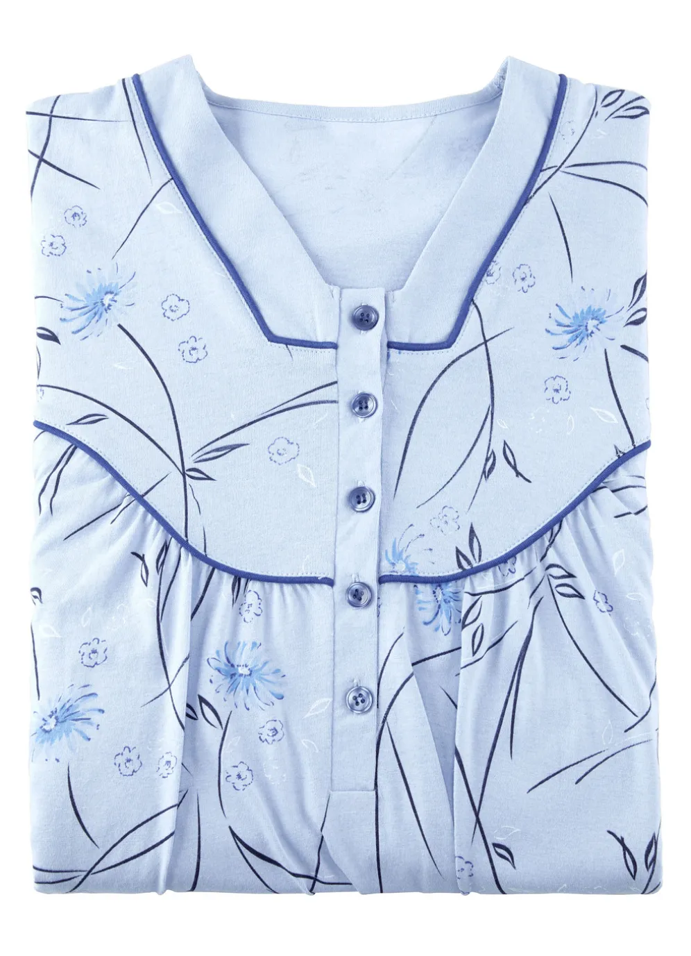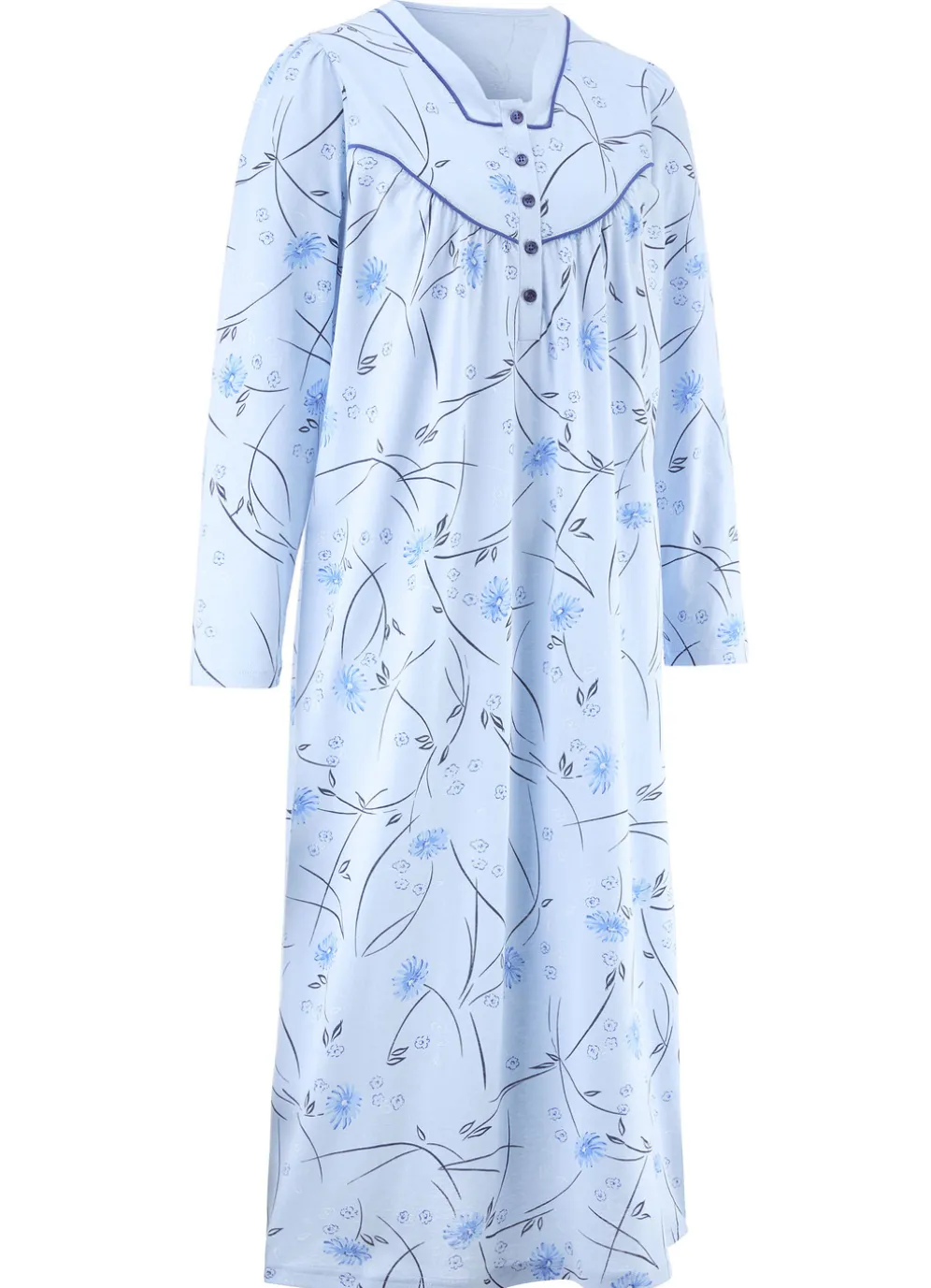 Nachthemd, Langarm mit Knopfleiste in Azurblau-Bunt und in Größe 38.