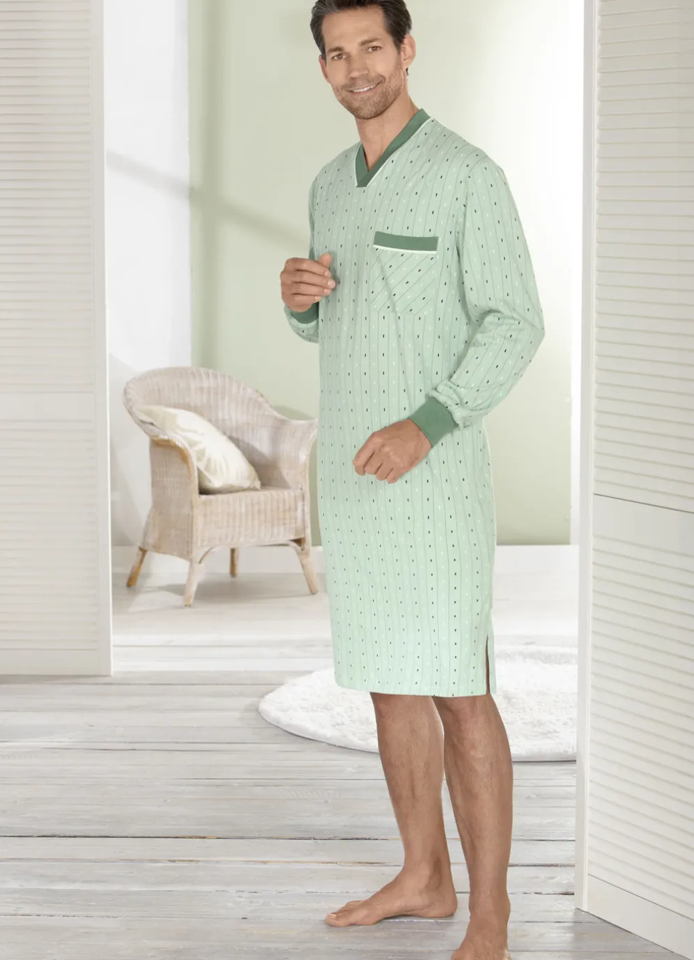 Superbequemes Nachthemd mit harmonischem Alloverdessin, V-Ausschnitt, aufgesetzter Brusttasche,