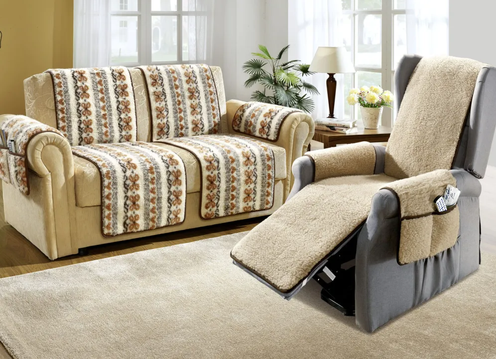 Herrlich naturnahe Wohnaccessoires aus 100% Schafschurwolle im Flor. Mit Bandeinfassung. Handwäsche bis 30 °C. Armlehnenschoner jeweils mit praktischen Taschen. Nach Öko-Tex Standard 100
