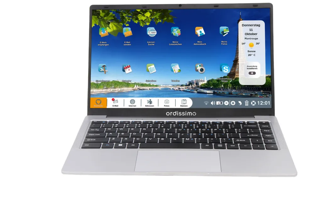 Es spielt keine Rolle, wie gut Sie sich mit Computern auskennen, dieses Notebook mit leichter und intuitiver Bedienung besitzt alle Funktionen eines herkömmlichen Geräts. Das Linux-basierte Ordissimo-Betriebssystem ist virensicher. Die einfache Benutzeroberfläche hat alle wichtigen Schaltflächen, und auf der Tastatur finden Sie alle wichtigen Befehle als Direktwahltasten wie z. B. Schriftgröße verändern, Mail-, Foto-, Text- oder Internetprogramm aufrufen.