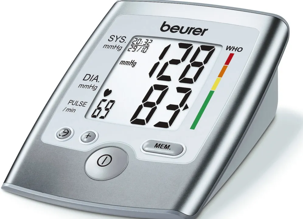 Oberarm-Blutdruckmessgerät BM 35 in Silber.