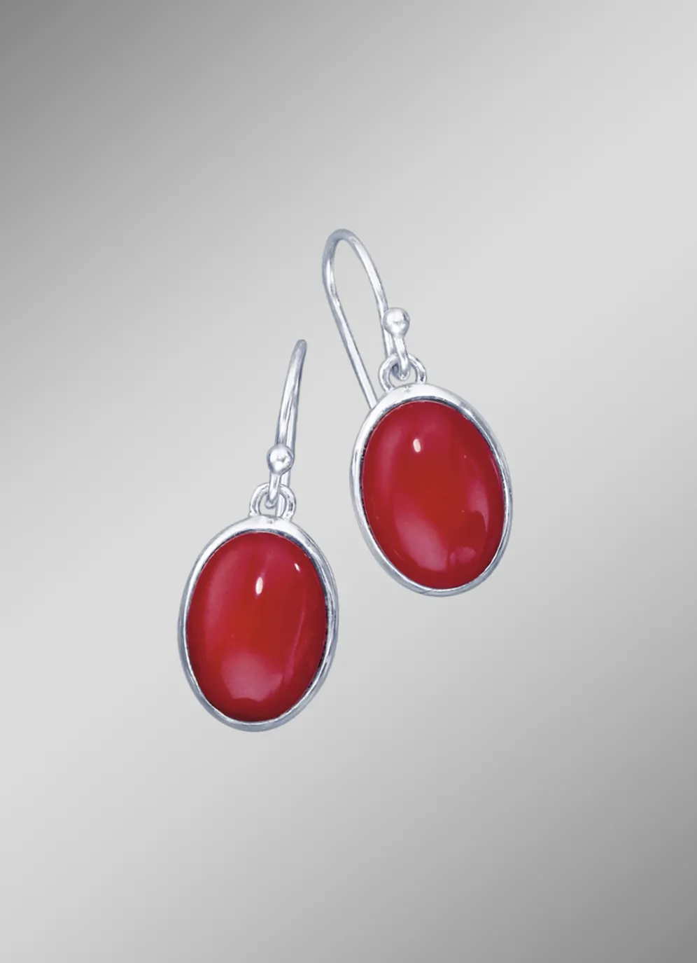 Bei diesen Ohrringen sticht sofort die ovale rote Bambuskoralle, beh., ins Auge. Kein Wunder, schließlich haben die Steine eine beeindruckende Größe und schimmern richtig edel. Den würdevollen Rahmen bildet die feine Fassung aus Silber 925/- fein.
