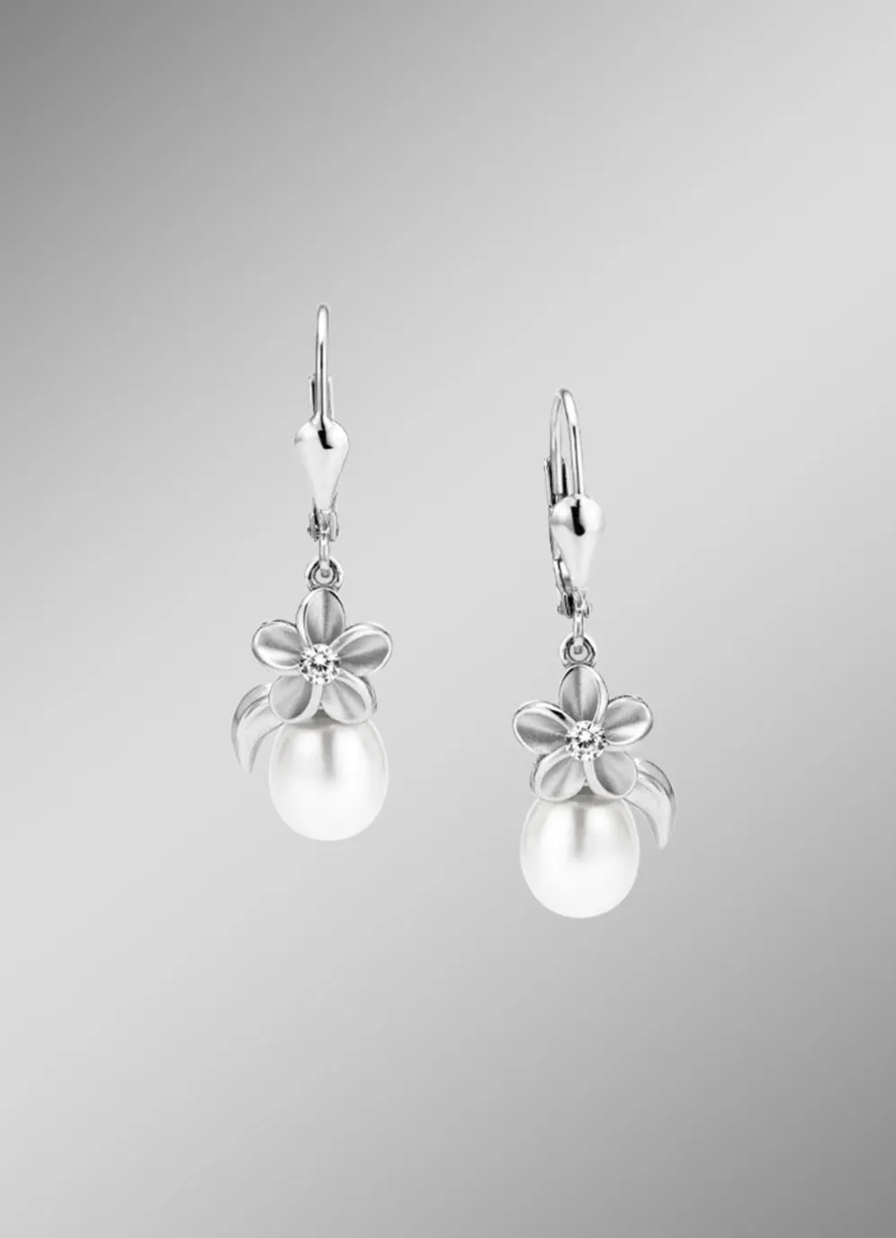 Ohrringe im bezaubernden Blumendesign mit Perlen und in der Legierung Silber 925/- fein.