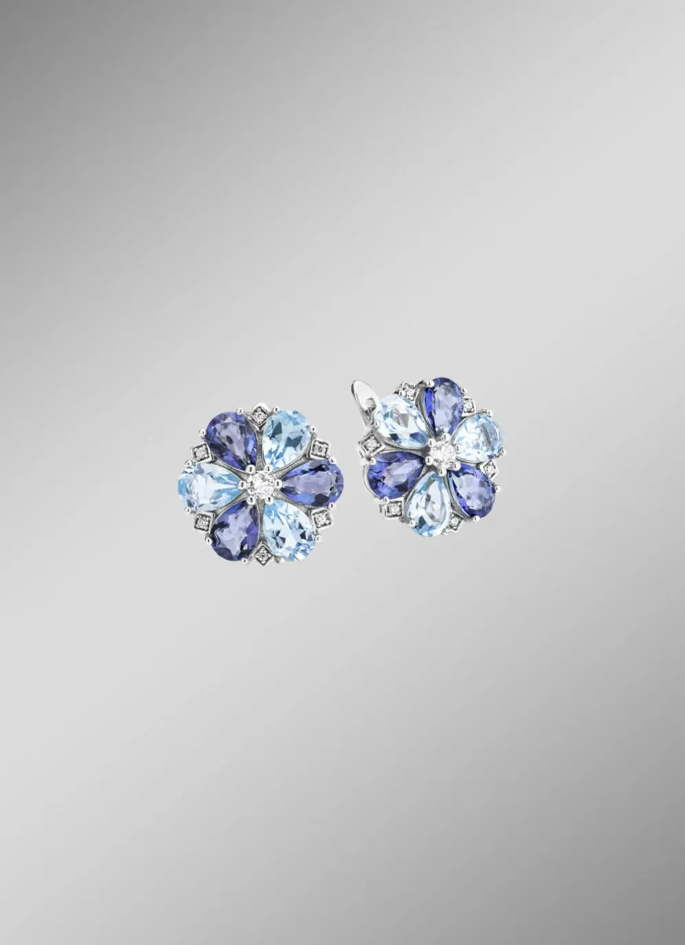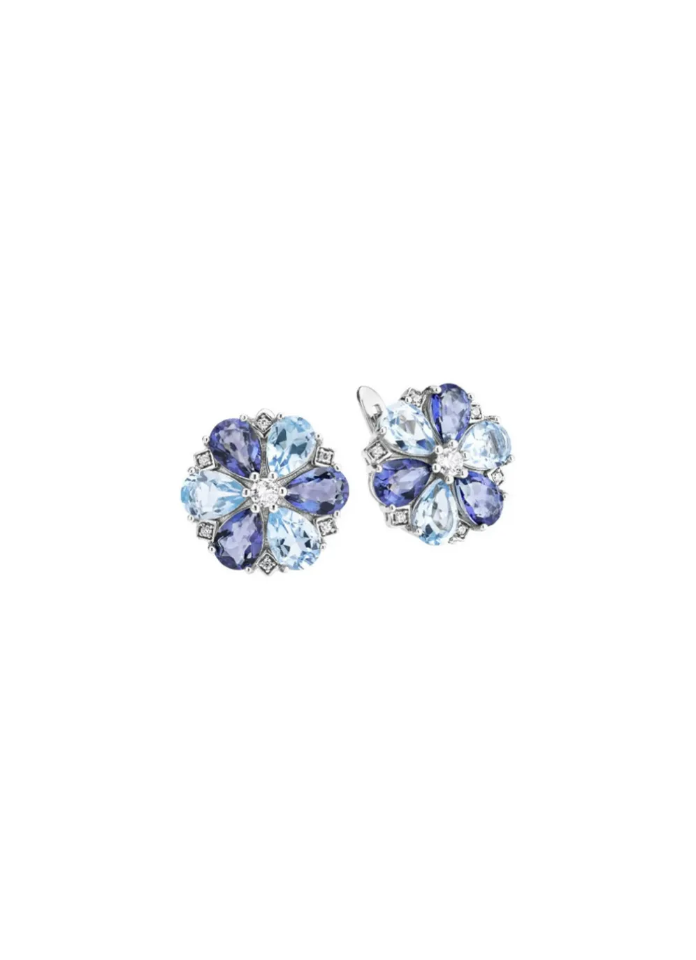Tauchen Sie ein in die Welt der Eleganz mit diesen bezaubernden Ohrringen im Blumendesign. Gefertigt aus Silber 925/- fein, vereinen sie die funkelnde Schönheit von echtem Weißtopas und behandeltem Blautopas. Mit einem Durchmesser von 17 mm und einem praktischen Klappscharnier sind diese Ohrringe nicht nur ein optisches Highlight, sondern auch besonders komfortabel zu tragen. Perfekt, um jedem Outfit einen Hauch von Raffinesse und Glamour zu verleihen.