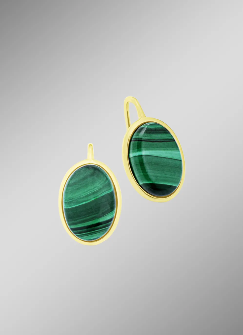 Verzaubern Sie Ihr Outfit mit diesen edlen Ohrringen aus vergoldetem Silber und echtem Malachit!