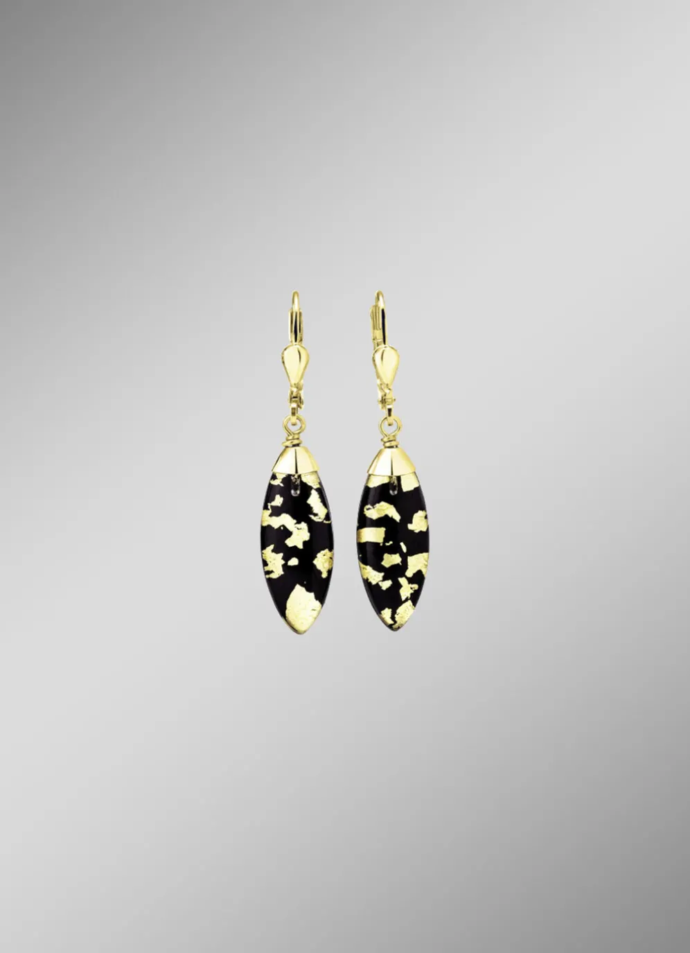 Ohrringe mit Onyx, beh. und Bergkristall mit Blattgold-Triplette