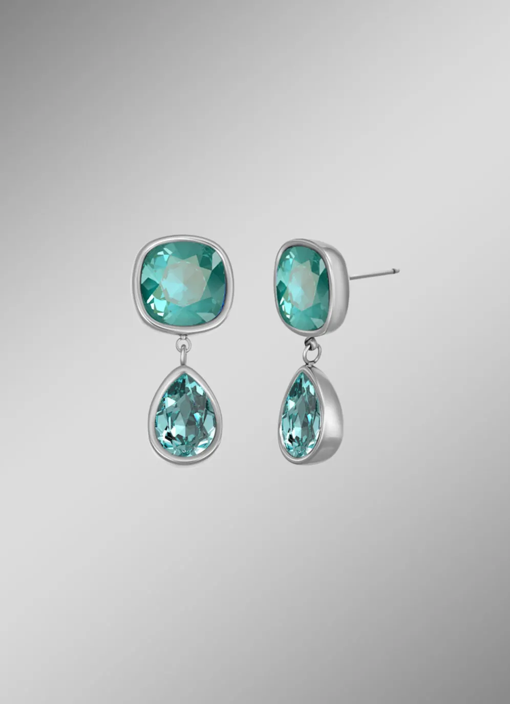 aus hochwertigem Edelstahl vereinen Eleganz und modernen Stil. Die kunstvoll geschliffenen Swarovski-Steine in einem leuchtenden Türkiston kommen in einer harmonischen Kombination aus quadratischer und tropfenförmiger Gestaltung daher. Mit einer Größe von 23 mm sind sie perfekt dimensioniert, um jedem Look das gewisse Etwas zu verleihen. Ein stilvolles Accessoire für alle, die besonderen Schmuck mit außergewöhnlichem Design schätzen