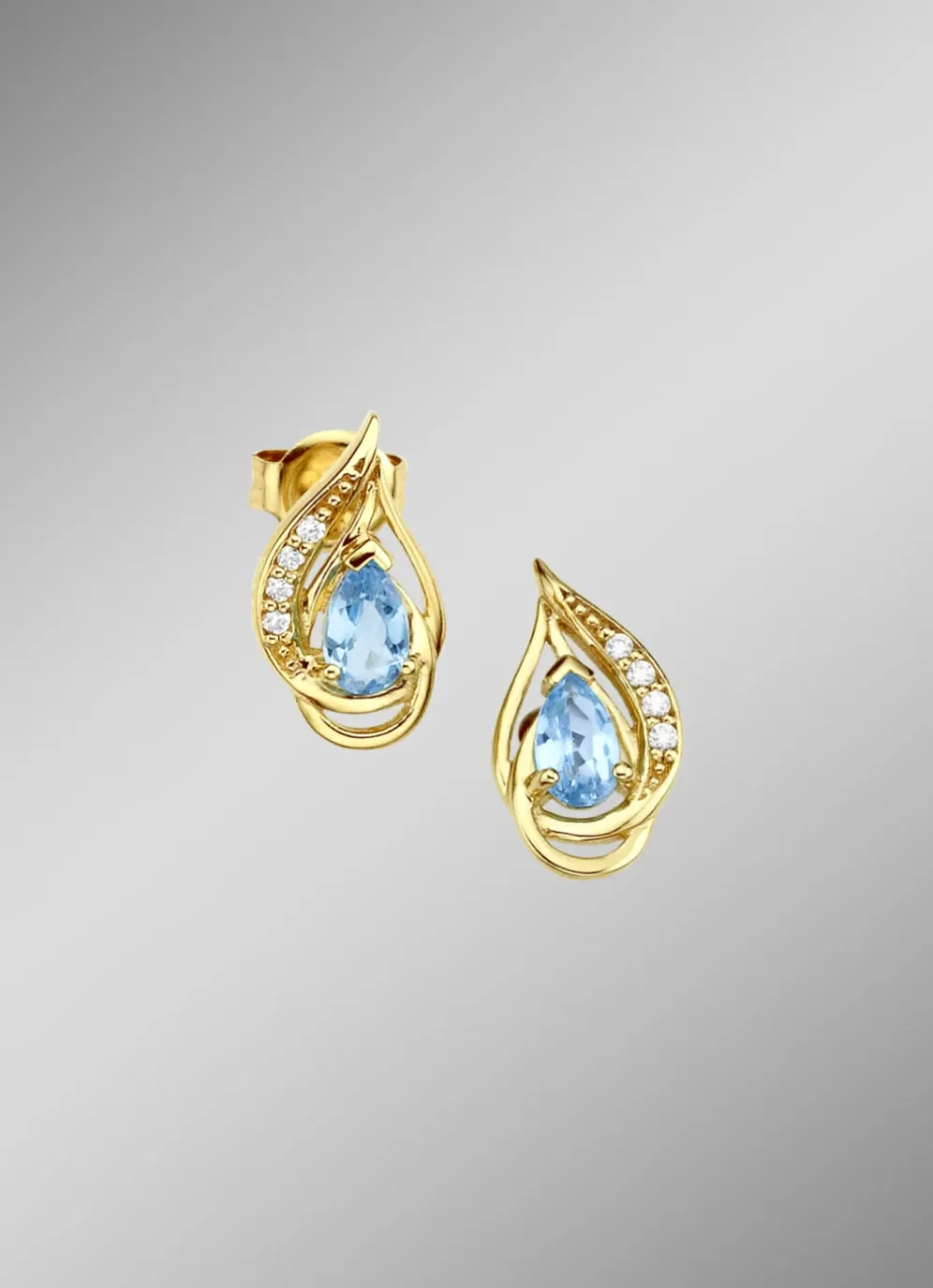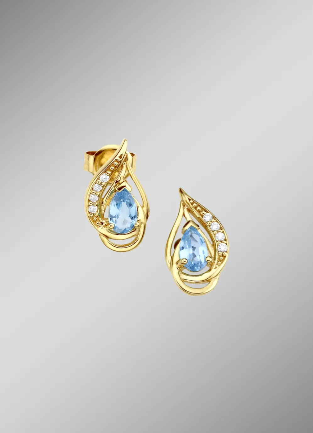 Ohrstecker mit echten Blautopase in der Legierung Gold 375/- fein.