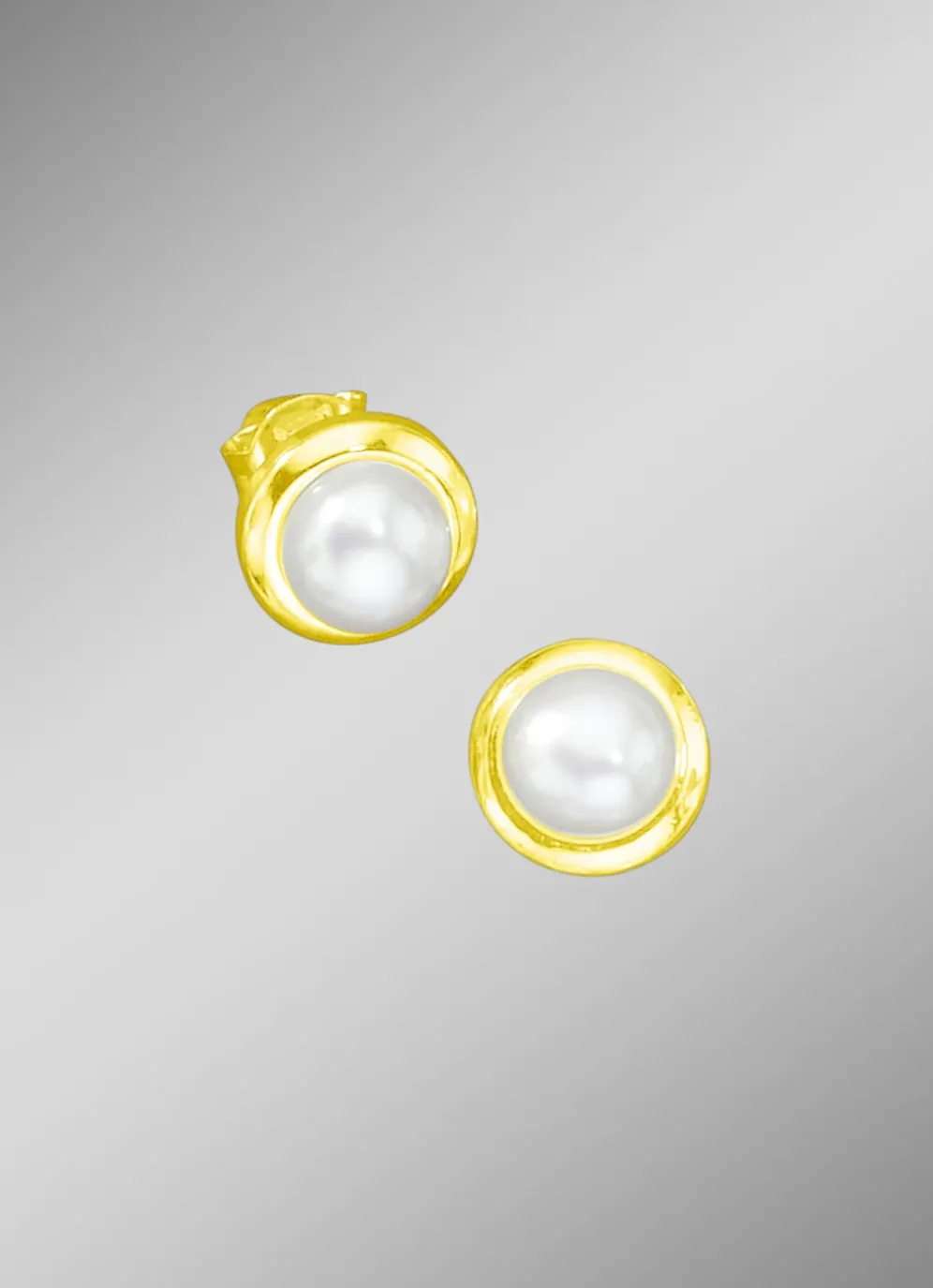 Diese Ohrstecker sind wahlweise in Gold 585/- fein oder in Gold 333/- fein, gefertigt. Gekrönt werden sie von einer weissen Süßwasser-Zuchtperle. Gesamt-Durchmesser von 8 mm.