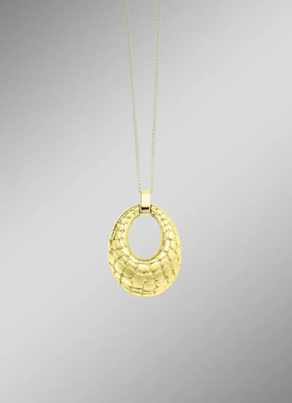 Entdecken Sie die faszinierende Schönheit unseres ovalen Anhängers aus 333er Gold. Mit seinen Maßen von 23 x 19 mm und dem kunstvollen Schlangen-Muster, das in einer harmonischen Kombination aus glänzenden und mattierten Oberflächen gestaltet ist, zieht dieser Anhänger alle Blicke auf sich.