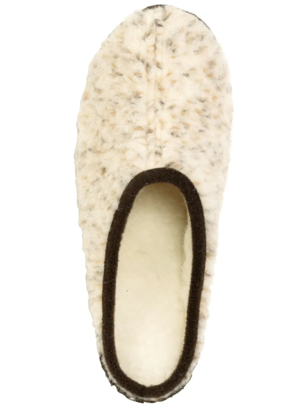 Pantoffel aus gesprenkeltem Wollplüsch in Beige-Braun und in Größe 36.