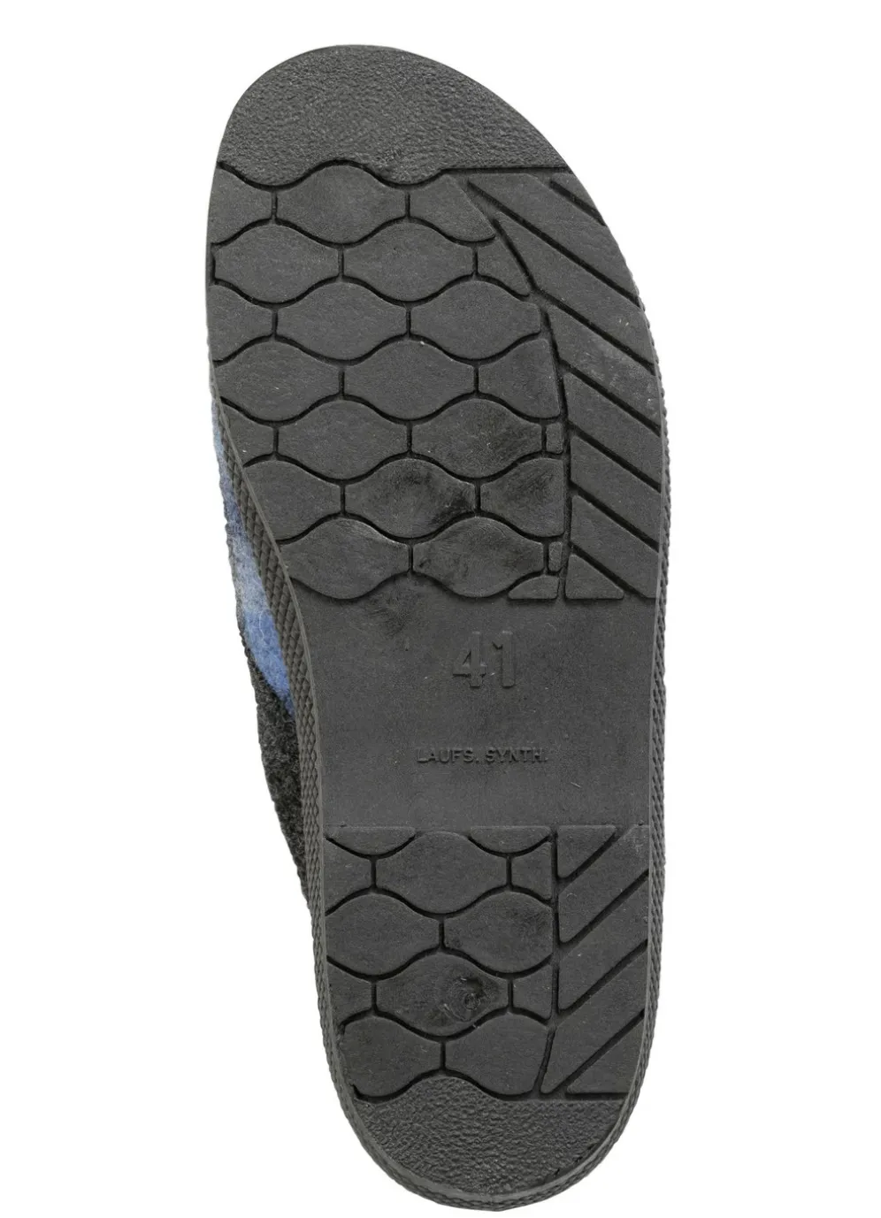Pantoffel aus kariertem Textilmaterial in Blau-Grau und in Größe 40.