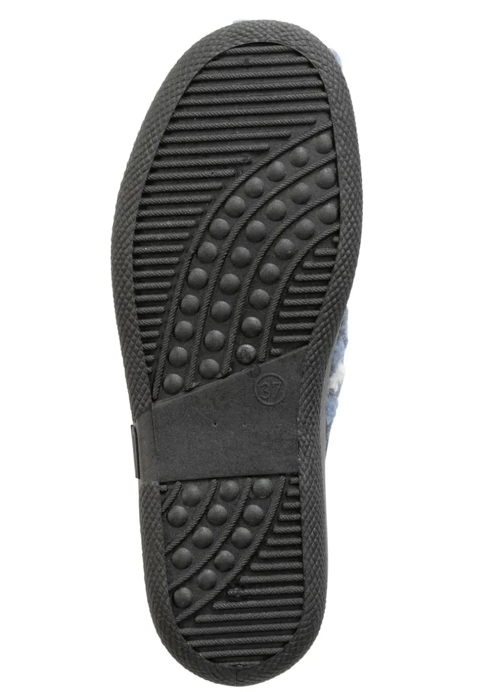 Pantoffel mit Blüten-Dessin in Jeans-Ecru und in Größe 41.