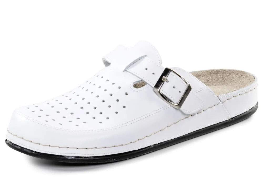 Pantolette aus Nappaleder mit luftiger Perforation in Weiss und in Größe 41.