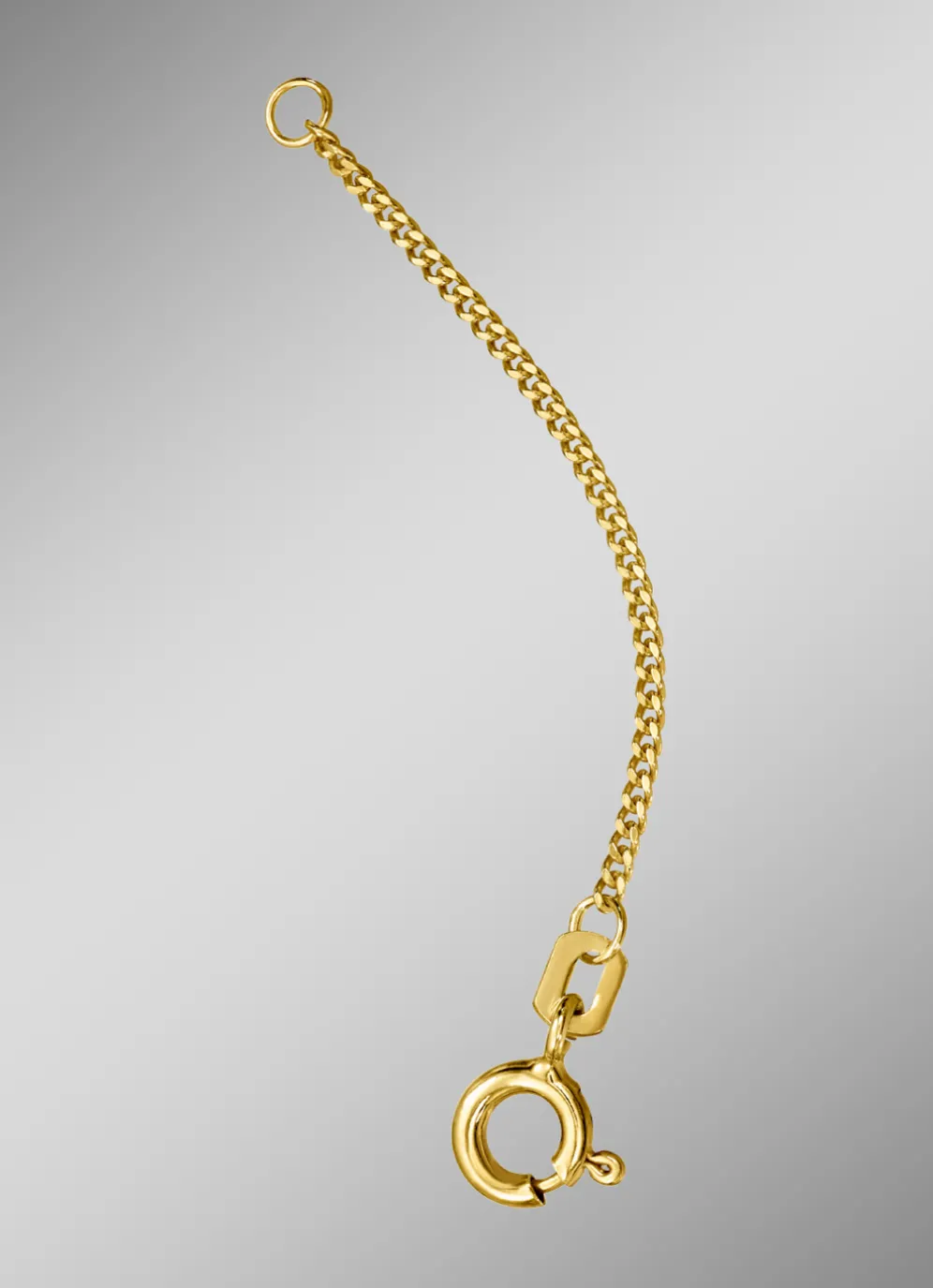 Aparte Panzer-Verlängerungskette aus Gold 585/- fein oder aus Gold 333/- fein. Das edle Kettchen ist in verschiedenen Längen erhältlich und mit einem Federring versehen.