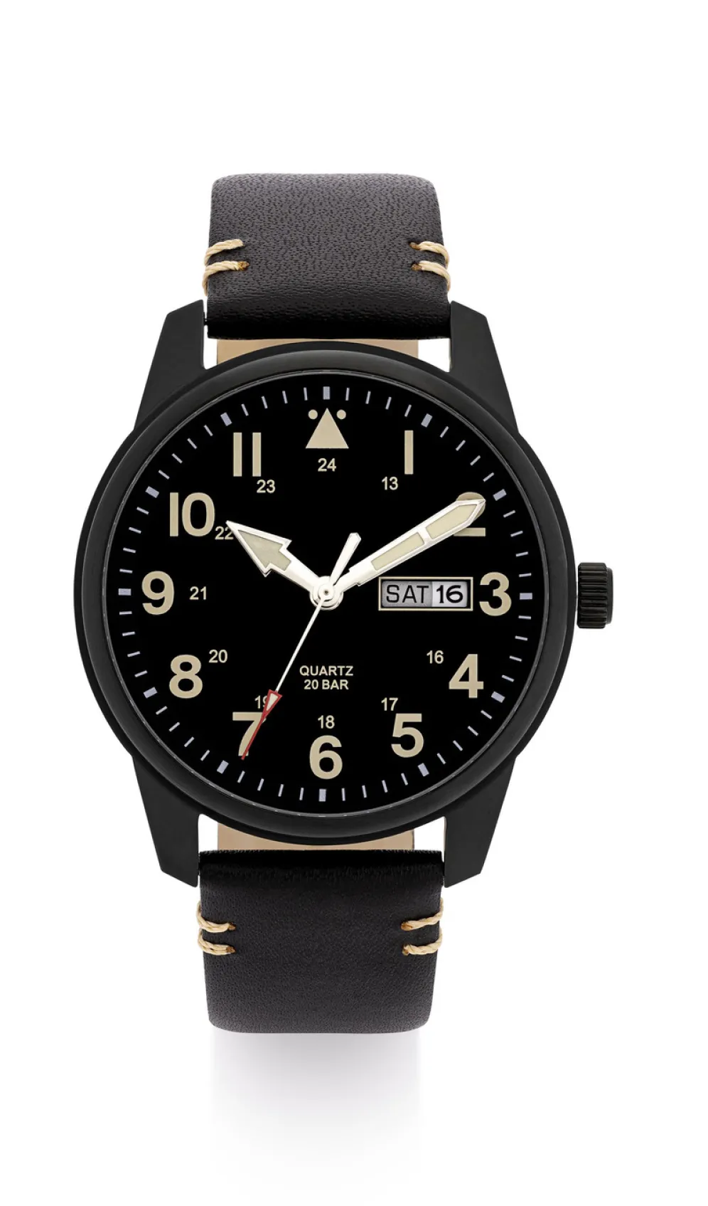 Para Quartz-Herrenuhr in Flieger-Optik mit einem Uhrenband aus schwarzes Lederband.