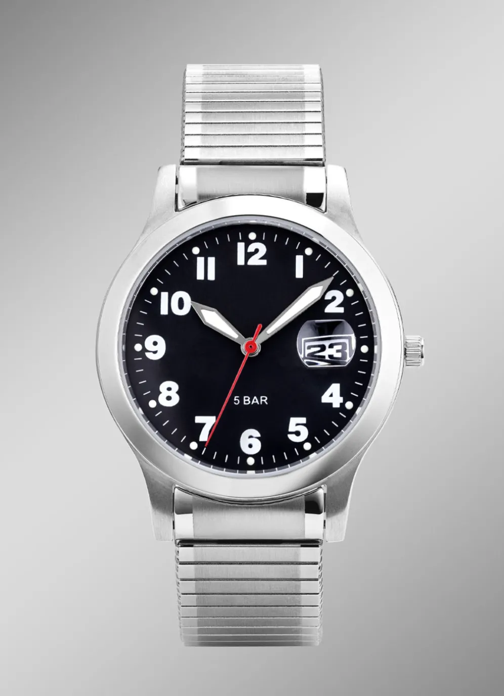Para-Quartz-Herrenuhr mit Edelstahlzugband