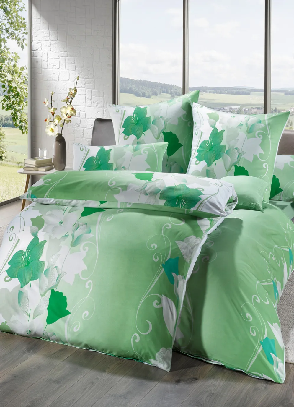 Angenehme Farben und ein fantastisches Dessin überzeugen bei dieser Bettwäsche-Garnitur,