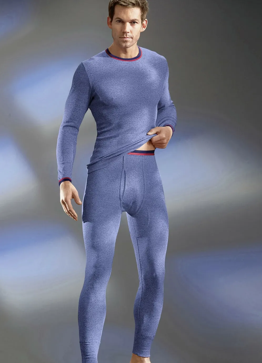 Permatherm Zweierpack Unterhosen, lang, Winterwäsche in 1X Jeansblau Meliert, 1X Anthrazit Meliert und in Größe 4.