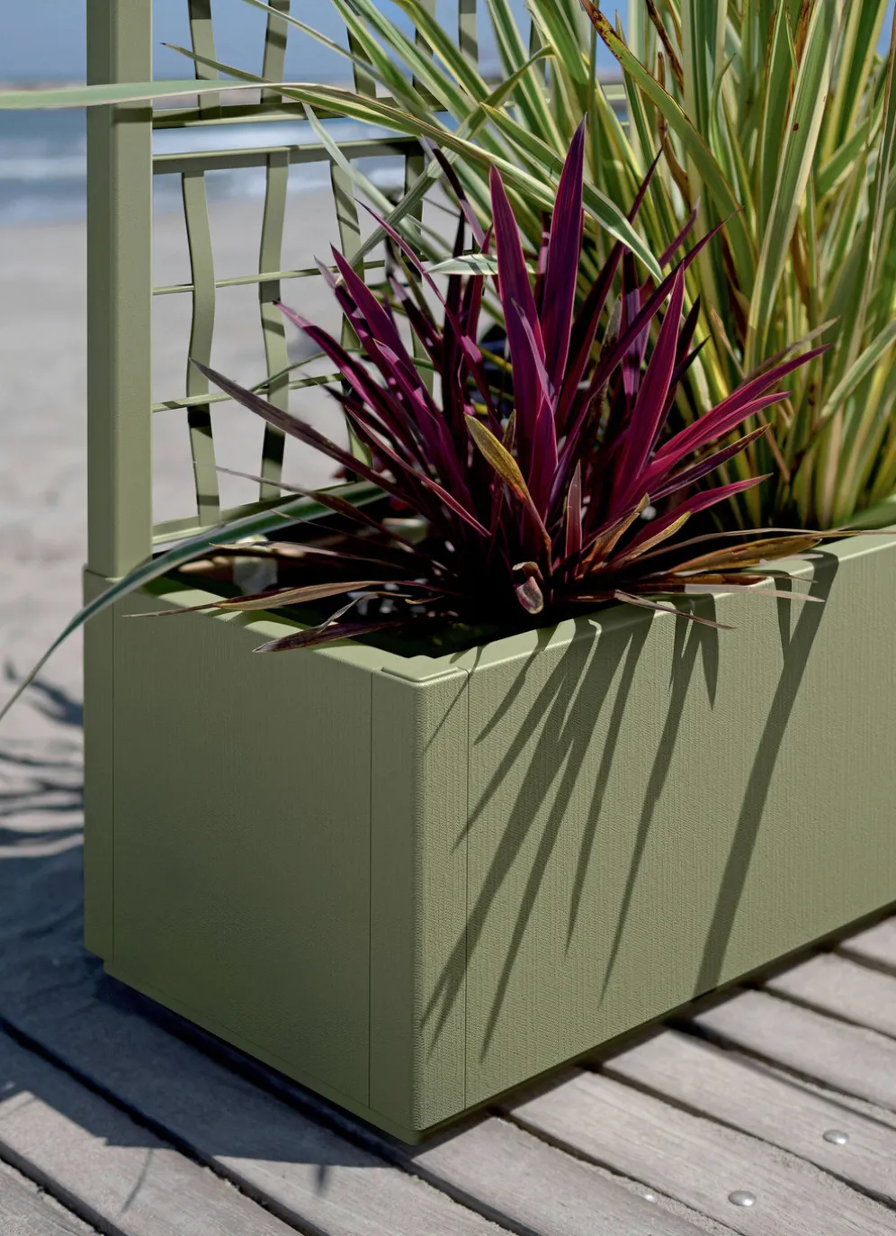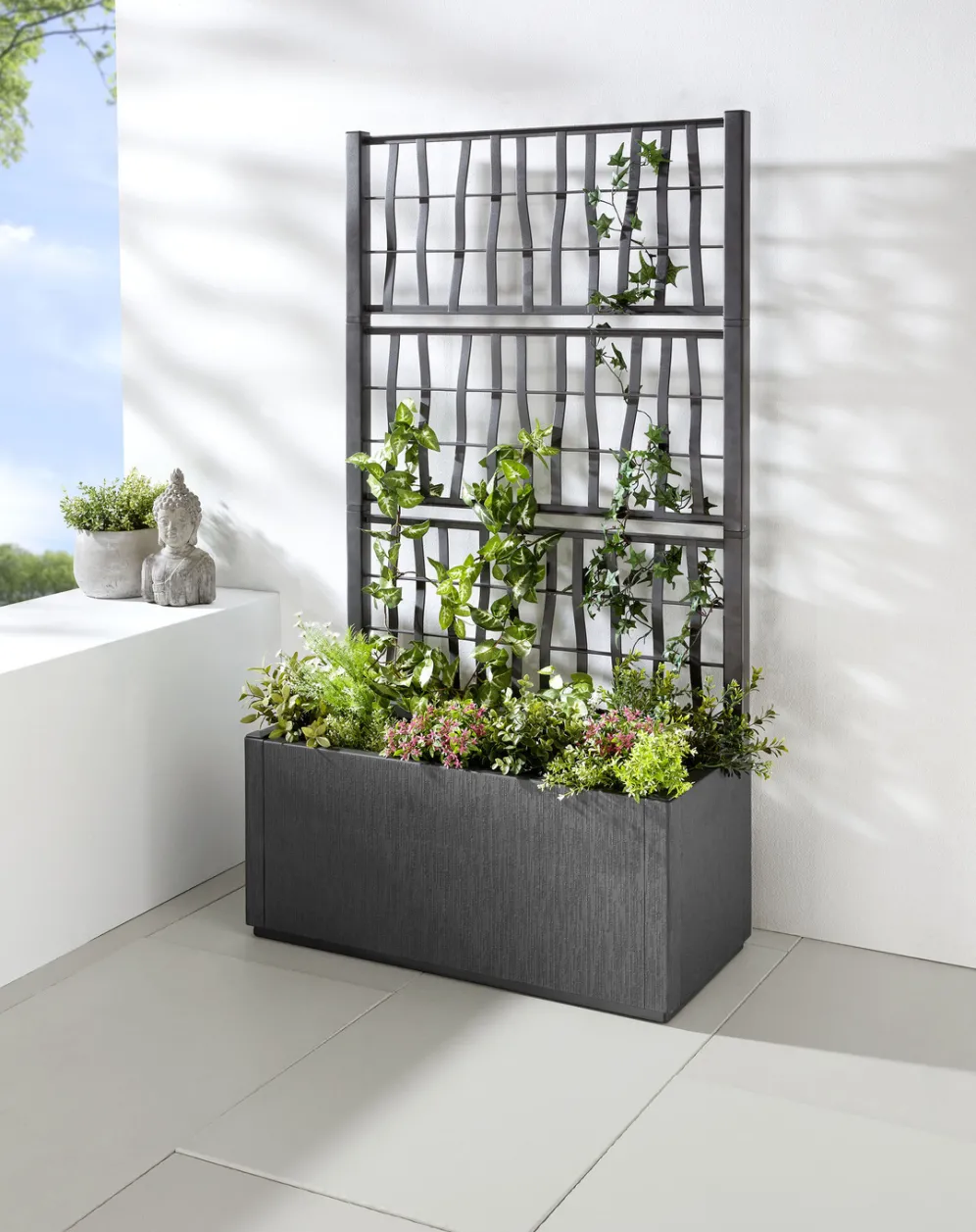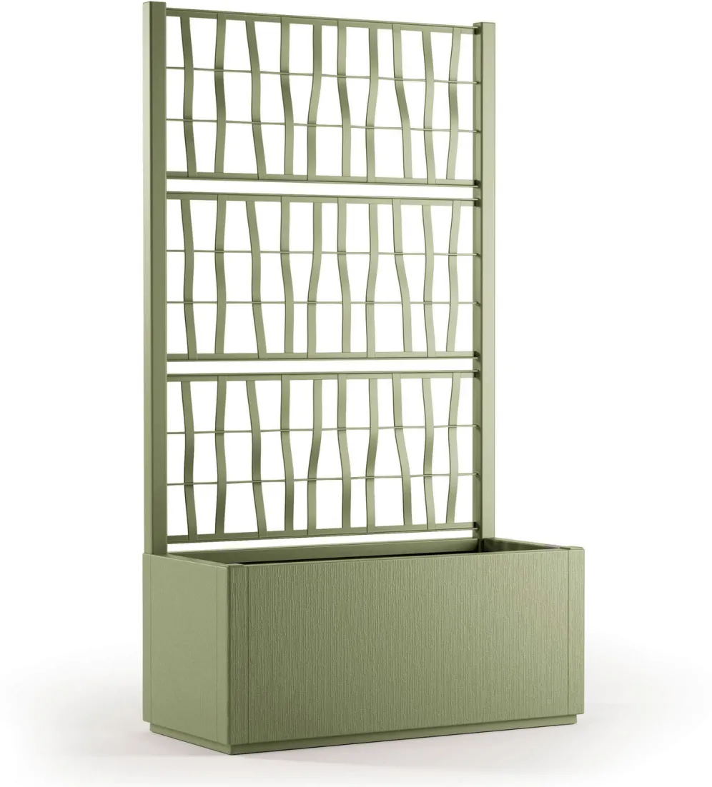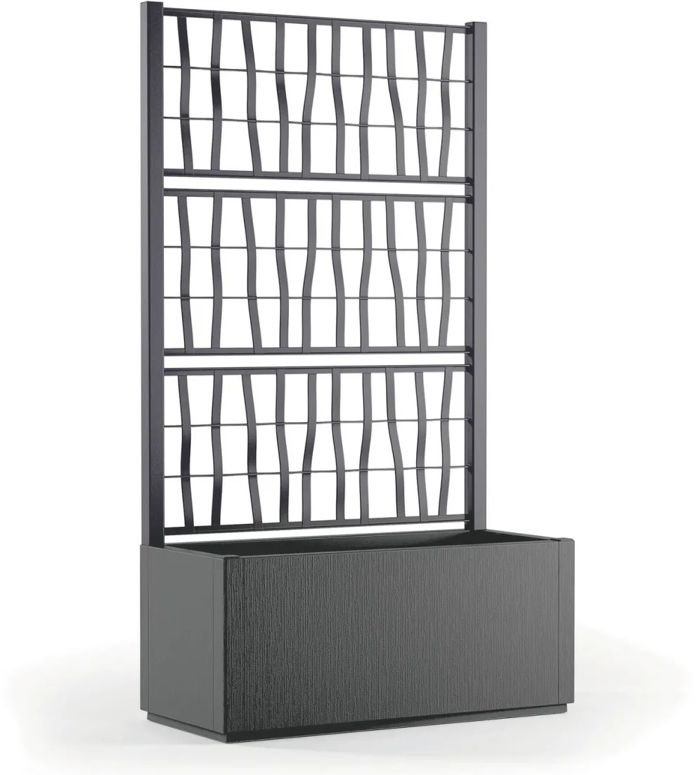 Dieser vielseitige Pflanzkasten mit modernem Designanspruch wurde speziell entwickelt, um Ihre Blumen und Pflanzen optimal unterzubringen. Im Kasten mit markant strukturierter Oberfläche finden sie ausreichend Platz, das stylisch gestaltete Spaliergitter erlaubt Rankpflanzen die Ausdehnung in die Höhe. Die integrierte Entwässerungsplatform sorgt dafür, dass Ihre Pflanzen stets die richtige Menge Wasser erhalten, ohne dass Staunässe entsteht. Aus 100% recyceltem Polypropylen.
