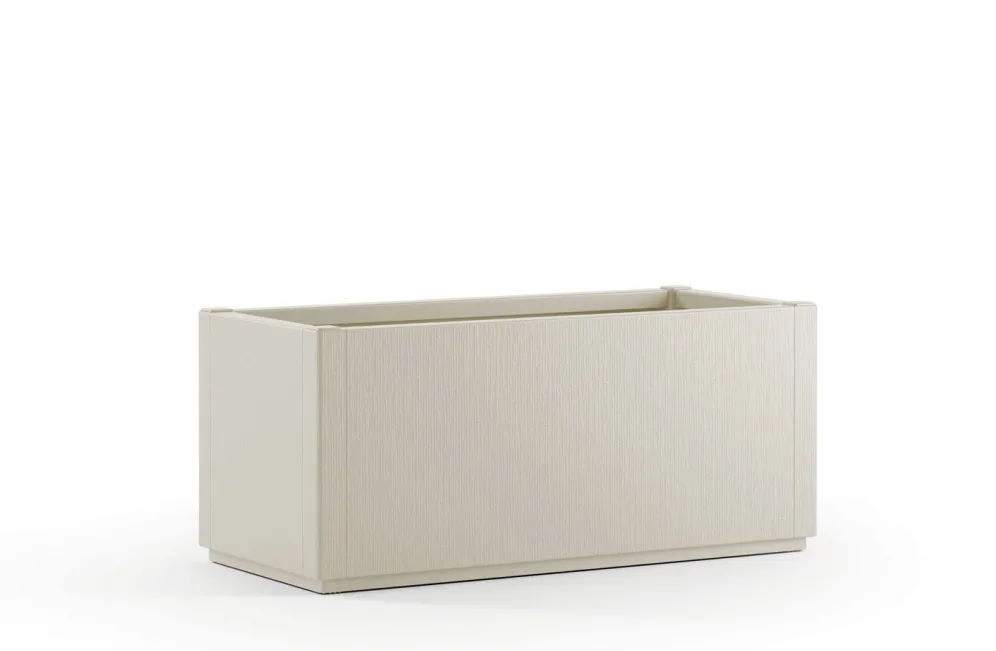 Pflanzkasten aus recyceltem Polypropylen in der Ausführung Ohne Spalier, schmal und in Weiss.