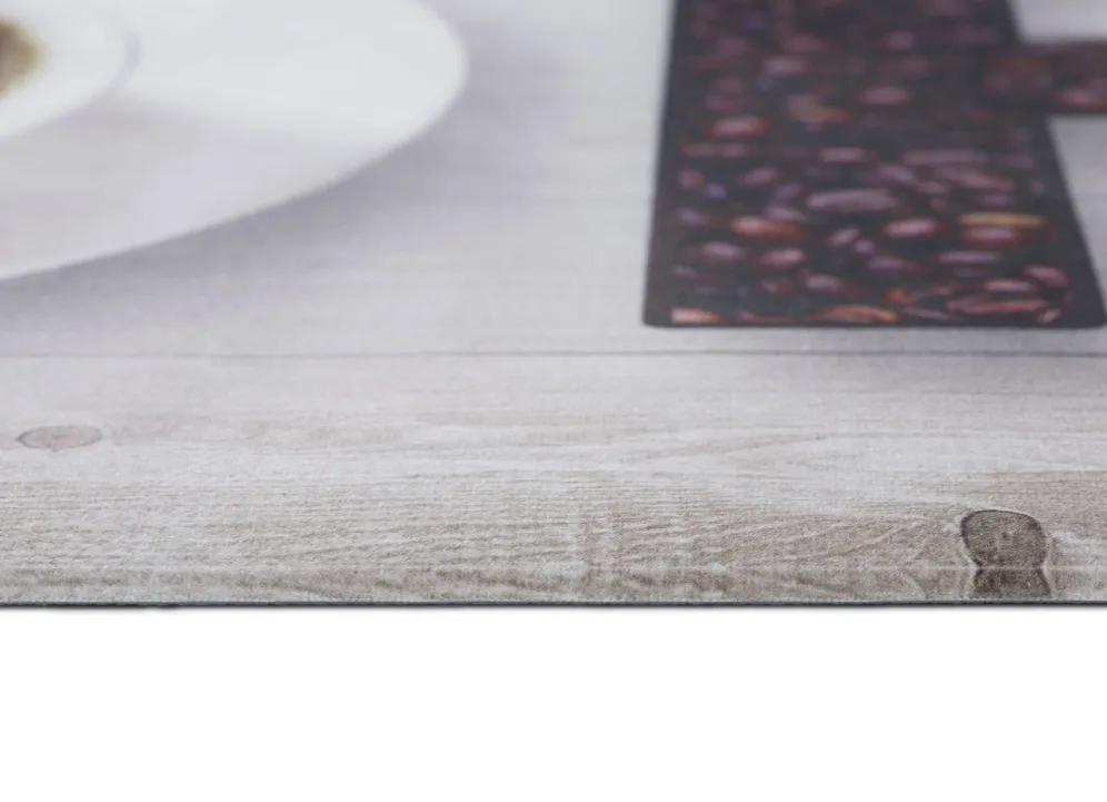 Ein echter Wachmacher ist dieser Küchenläufer mit Kaffeetasse und „Coffee“-Schriftzug. Durch das tolle Design und der schönen Farbgebung wird er ein echter Hingucker in Ihrer Küche werden.