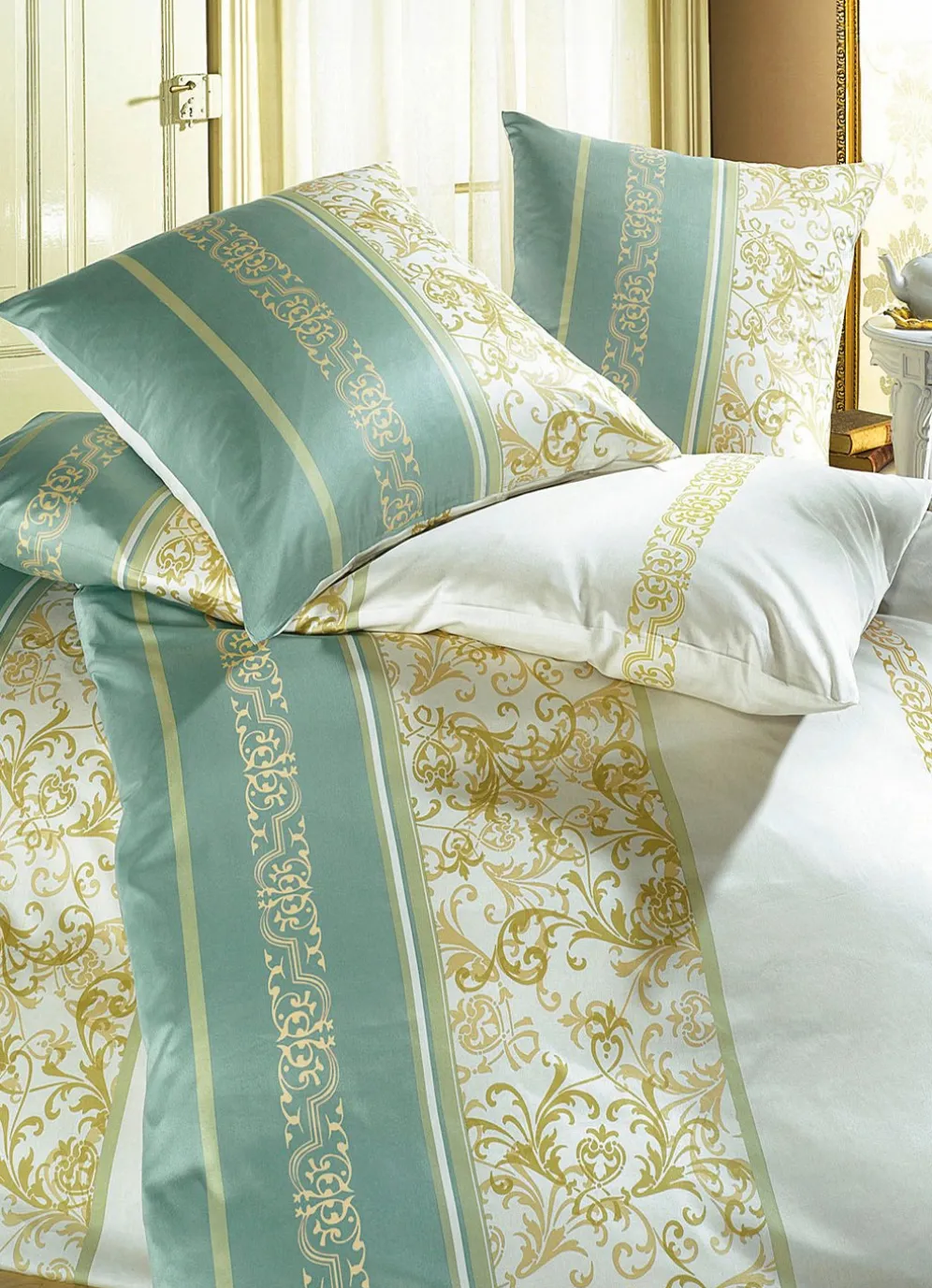 „Estella“ – feinste, hochwertige Bettwäsche-Garnitur in hochaktuellen Farben. Mit einem zeitlos eleganten Dessin veredelt diese Garnitur jedes Schlafzimmer. Erhältlich in zwei pflegeleichten Qualitäten aus 100% Baumwolle (Mako). Waschbar bis 60 °C und trocknergeeignet